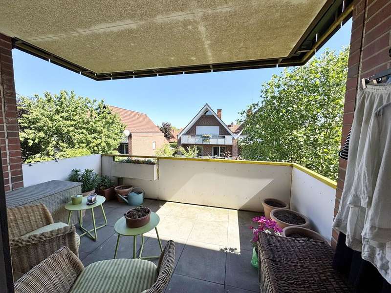 Lots of light, clear structures and a well thought-out floor plan: This exclusive apartment with two exceptionally deep balconies and a view of the Emsauen offers the best conditions for comfortable living in old age - quiet, barrier-free and in a well-kept community with a high standard of living. The open-plan living and dining area impresses with its spaciousness and clear design. Floor-to-ceiling windows on both balconies flood the room with light and give the apartment a prestigious appearance. The kitchen is functionally integrated into the living area and deliberately kept compact to leave room for the essentials: Brightness, openness and atmosphere. The two balconies are exceptionally deep - there is not only space to sit, but also to relax. Ideal for sunny hours, quiet evenings or simply to let your gaze wander over the Ems floodplains. The view of the lush greenery and tall poplars creates a special connection to nature - in the middle of the residential area and yet all to yourself. An elevator takes you comfortably and barrier-free to the front door of the apartment. A spacious underground parking space and a separate, locked cellar room provide practical convenience in everyday life. The building community is characterized by a pleasant atmosphere in which everyone can rely on each other. Here you live with people who are considerate, appreciate order and value a well-kept environment. Binding house rules and clear structures create security - for today and tomorrow. The apartment is currently very well let. Buyers who would like to move in themselves are therefore advised to take a long-term view: It is ideal for people who want to make provisions today for the coming years and secure a future home at an early stage. If you want to use the apartment yourself immediately, you should be aware that respectful treatment of the existing tenancy is a matter of course. This is not about quick use - but about a stable investment in your own future. Above the underground garage is a well-kept, landscaped area for communal use - a place for quiet moments outdoors. On the first floor, smaller commercial units discreetly complement the infrastructure and fit harmoniously into the overall concept. The entire residential complex has been extensively modernized in recent years and is in a permanently good condition - both technically and visually. This bright, quiet yet prestigious apartment is ideal for anyone who is already planning for tomorrow - with comfort, vision and a home that offers security and community. An investment in quality of life - and in a future in which you really feel at home.