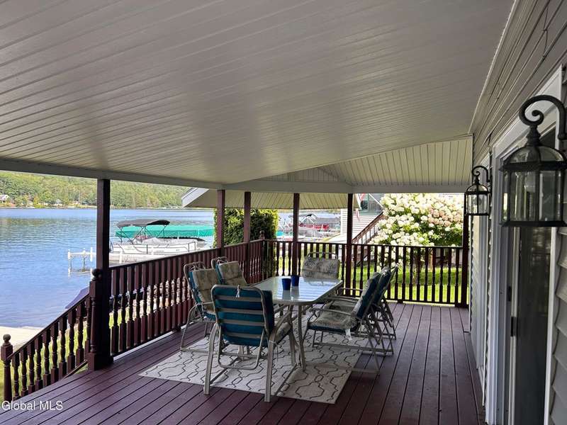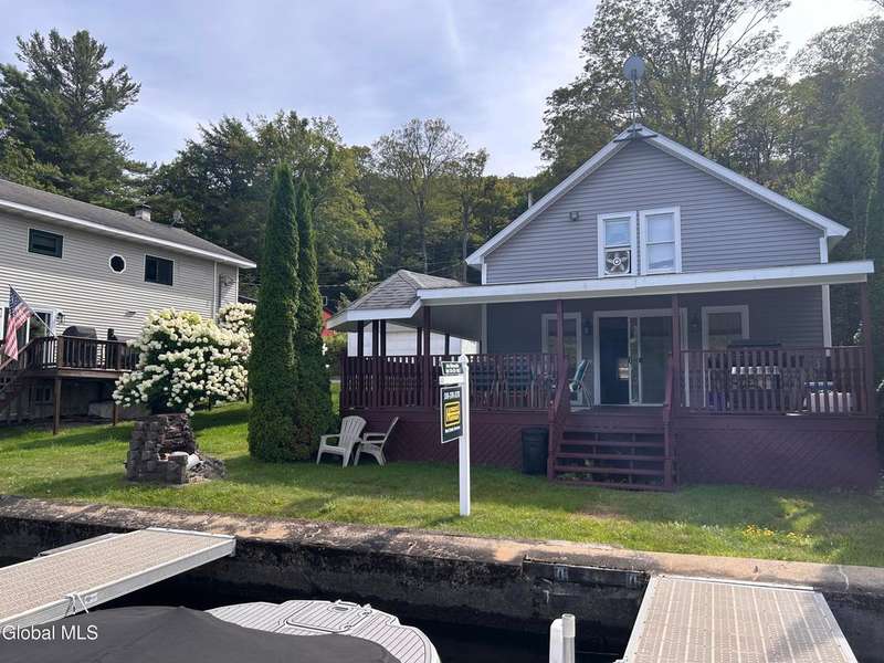 DIRECT CANADA LAKE FRONT HOME! This direct lake front, year round home offers four bedrooms, an open floor plan, and a covered deck a few steps from the water. Two docks for mooring on this pristine 6 mile long lake. Canada Lake connects to both West and Green Lakes. Bedrooms offer more space than appears in the photos. Property line just past the moored Jet ski.