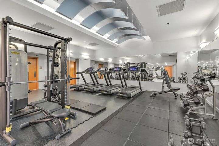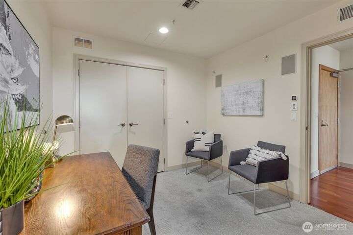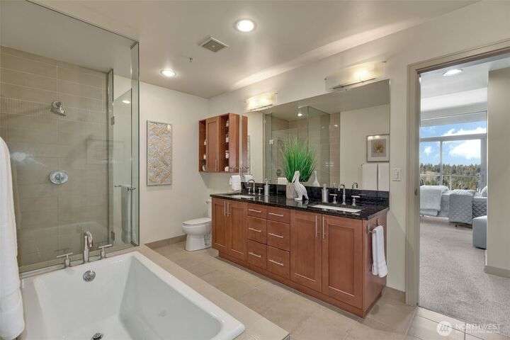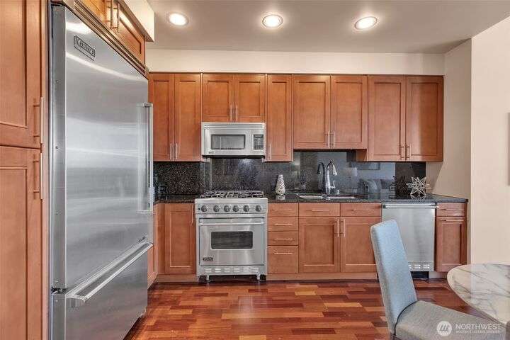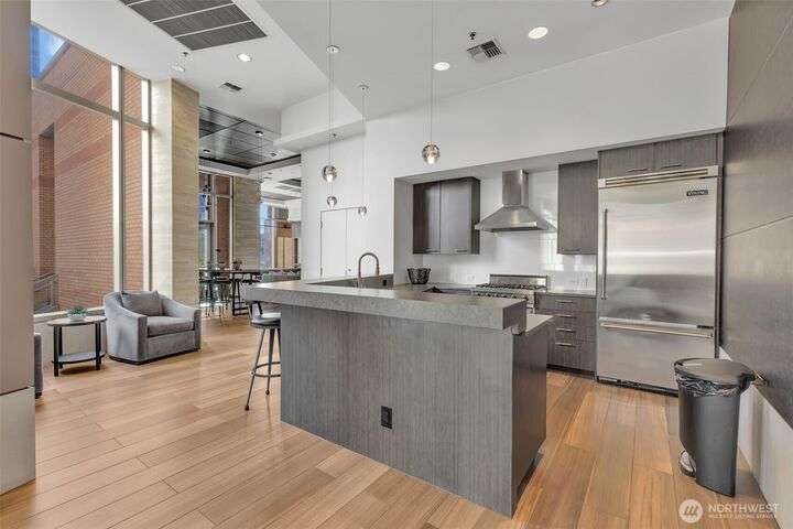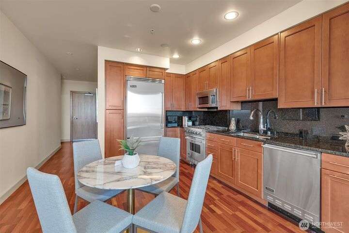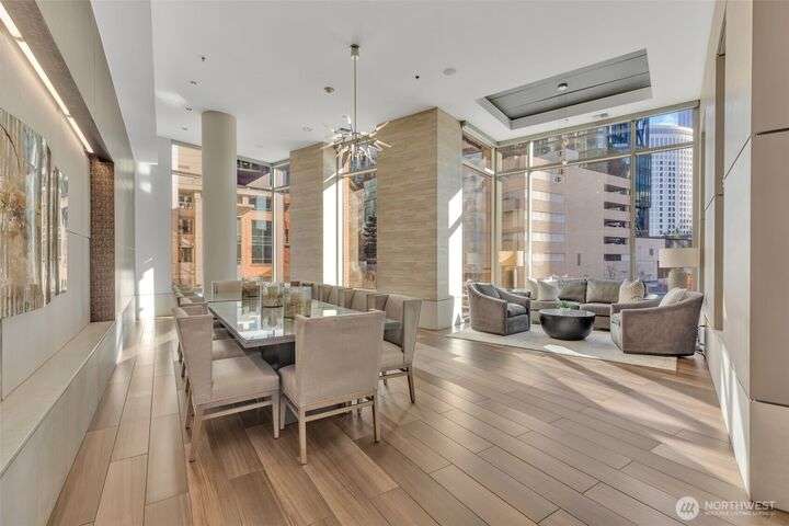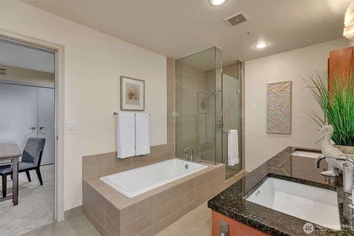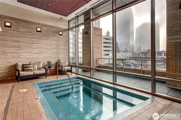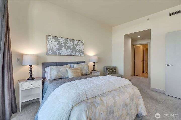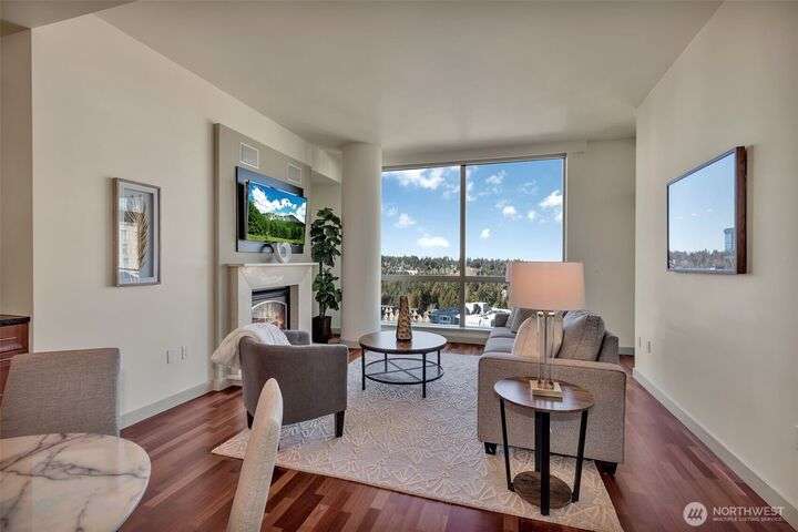 Enjoy 22nd floor views in luxury at Washington Square with 10-foot ceilings, fireplace and floor-to-ceiling windows! The kitchen is a chef’s dream, equipped with Viking stainless steel commercial appliances w/gas stove. Spa-inspired 5-piece bath, complete with a soaking tub and frameless glass shower. The bedroom includes motorized shades and blackout drapes for added comfort. Enjoy a private patio, as well as access to the Owner’s Lounge, Gym and Spa. Additional perks include secure parking and storage unit. The concierge and elegant lobby offer a warm welcome to your guests. Close to shopping, restaurants, Amazon, waterfront park & more.