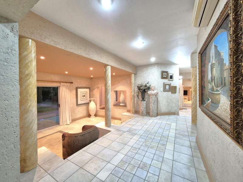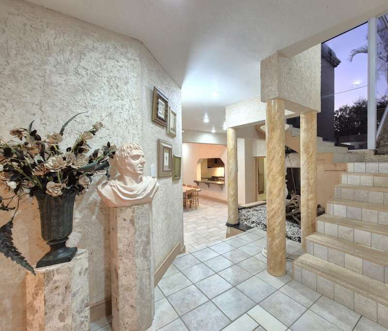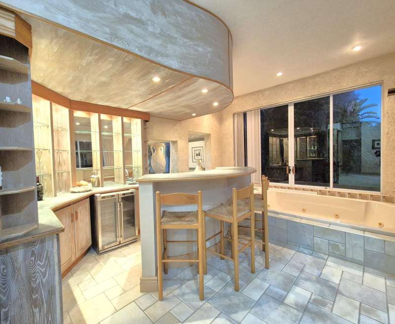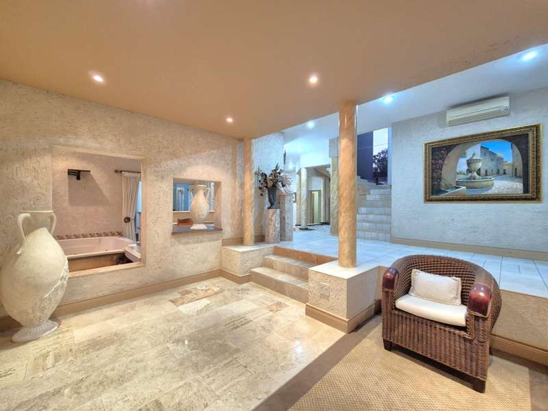Discover timeless elegance in this Italian-style beach home, perfectly situated on a road-level property with direct access to a private beach. The main house offers luxurious living with 3 en-suite bedrooms, each with walk-in closets and private balconies showcasing ocean views. A fourth guest bedroom and en-suite servicing the living areas. All separate living spaces with sliding doors that open out to the garden and pool area. Entertain effortlessly with an indoor bar, jacuzzi, undercover braai, and a patio leading to the sparkling pool, all set against the stunning seaside backdrop. The fully fitted garden cottage features 3 en-suite bedrooms, an open-plan lounge and dining area, and a separate kitchen, perfect for extended family or guests. This property is secured with high perimeter walls, an alarm system and an automated designer gate. Additionally a laundry room, domestic quarters, storeroom, and a spacious 3-car garage complete this exquisite home... Experience unparalleled beachfront luxury?Çöcontact me today for a private viewing!