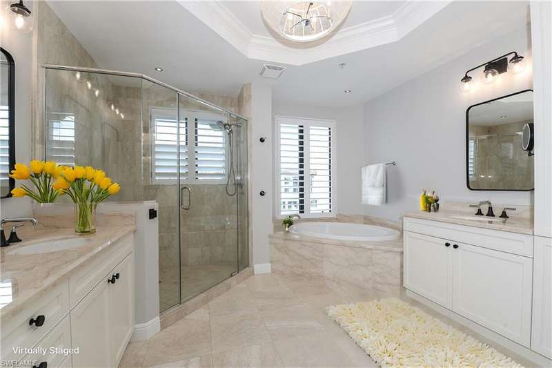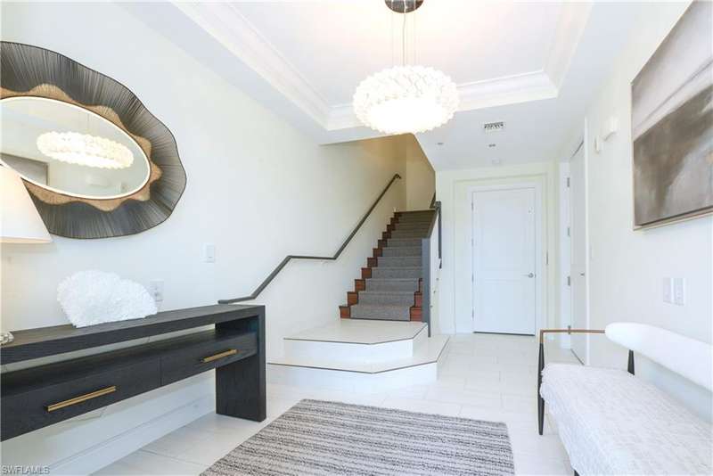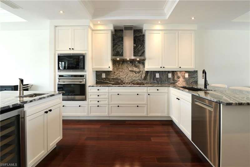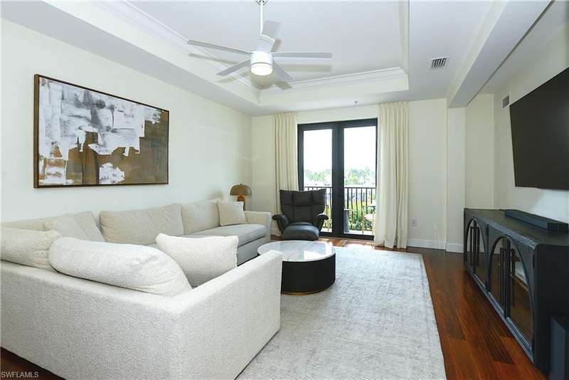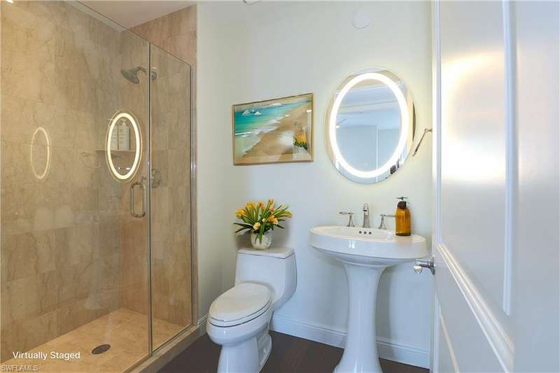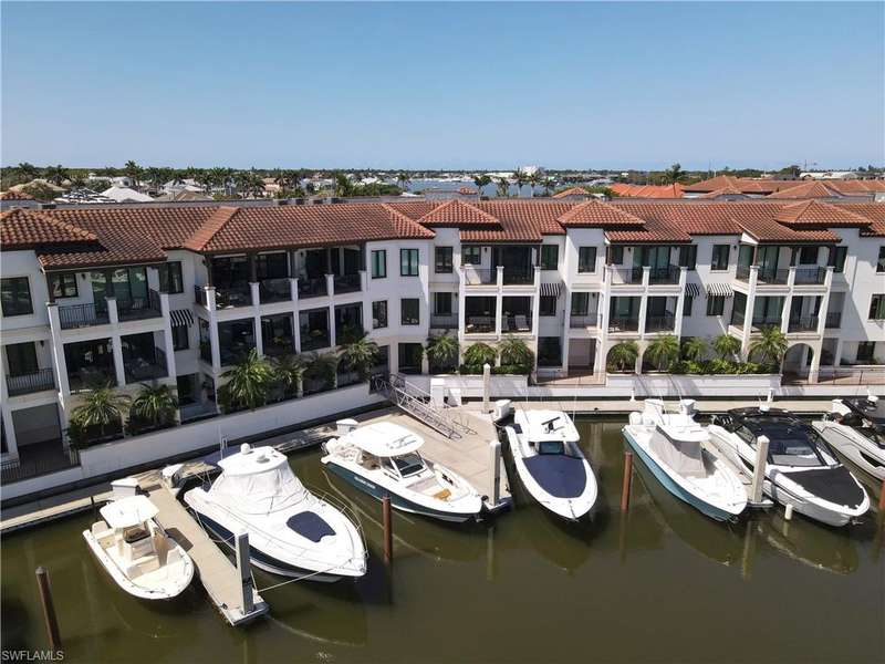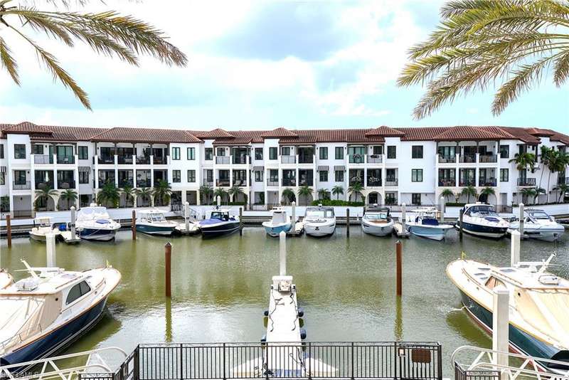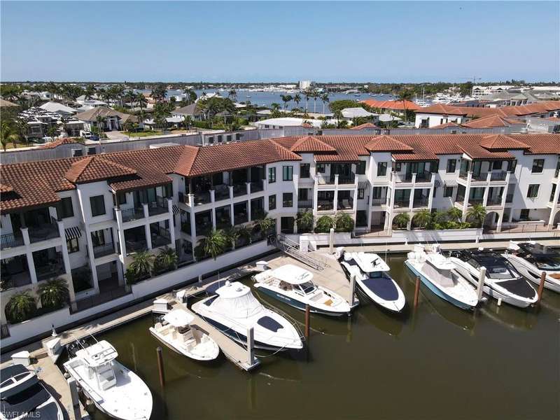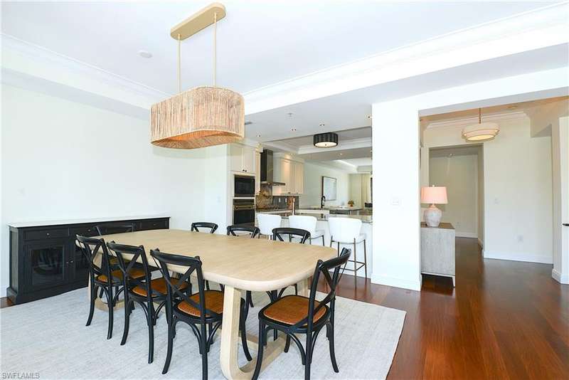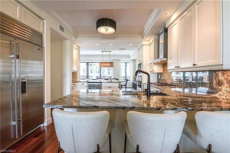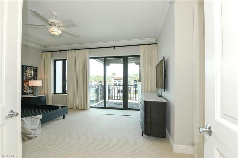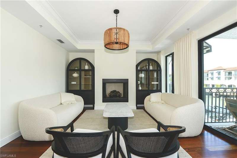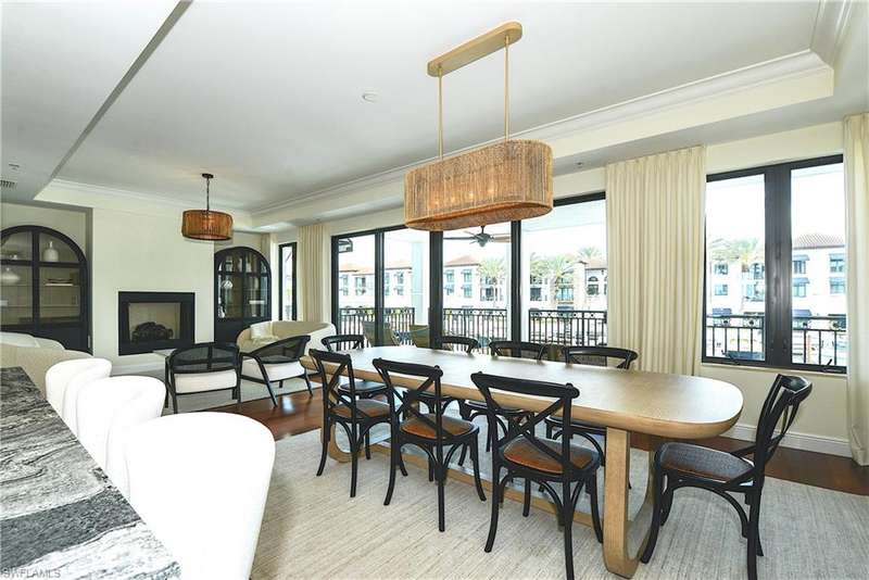 Indulge in the pinnacle of luxury waterfront living at Naples Bay Resort, where this exquisite 3-bedroom plus den, 4-bath condo offers an unparalleled blend of sophistication, comfort, and exclusivity. Perfectly positioned within one of Naples' most sought-after gated communities, this residence boasts breathtaking marina and water views from five private balconies, capturing the essence of resort-style living. Step inside to find an expansive, light-filled interior, meticulously designed with refined finishes and upscale details throughout. The open-concept living and dining areas are framed by floor-to-ceiling windows, allowing natural light to cascade across elegant flooring and custom millwork. The gourmet kitchen is a chef's dream, complete with top-of-the-line appliances, custom cabinetry, and sleek quartz countertops, making it both a functional workspace and a stylish focal point for entertaining. A private elevator leads to the luxurious primary suite, a serene retreat offerin