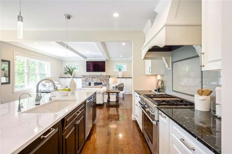 Imagine coming home to your own private sanctuary in Edina's coveted Highlands neighborhood—a custom-built masterpiece. From the moment you pull into the heated, oversized 3-car garage with gleaming epoxy floors, you'll discover thoughtful luxury at every turn: gleaming hardwood floors flow through an open floor plan anchored by a gourmet kitchen with premium Thermador and Viking appliances, while the four-season porch with its real wood-burning fireplace offers year-round comfort for cozy evenings or refreshing afternoons. Upstairs, retreat to four generously sized bedrooms, including a primary suite with heated tile bathroom floors, plus a large bonus room for endless possibilities. The fully finished lower level becomes your personal entertainment complex with a sophisticated wet bar and fitness room, while the built-in SONOS sound system creates perfect ambiance throughout your home. Step outside to your private oasis featuring a brand-new composite deck (2024), fully-fenced backyard lined by a cedar privacy fence, and a built-in fire pit, plus a 12'x16' insulated shed for all your storage and hobby needs. Beyond the luxury finishes—including whole-home water purification, full home generator, and dedicated office—you'll love the unbeatable location just 1.5 miles from both Edina Country Club and Interlachen Country Club, centrally located to nearby public and private schools, and minutes from premier shopping and dining. This isn't just a home—it's your family's foundation for creating memories and living the life you've always envisioned!