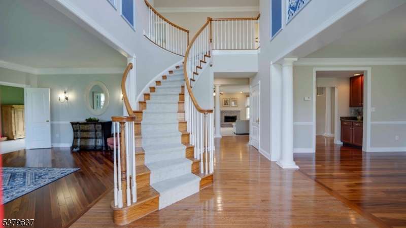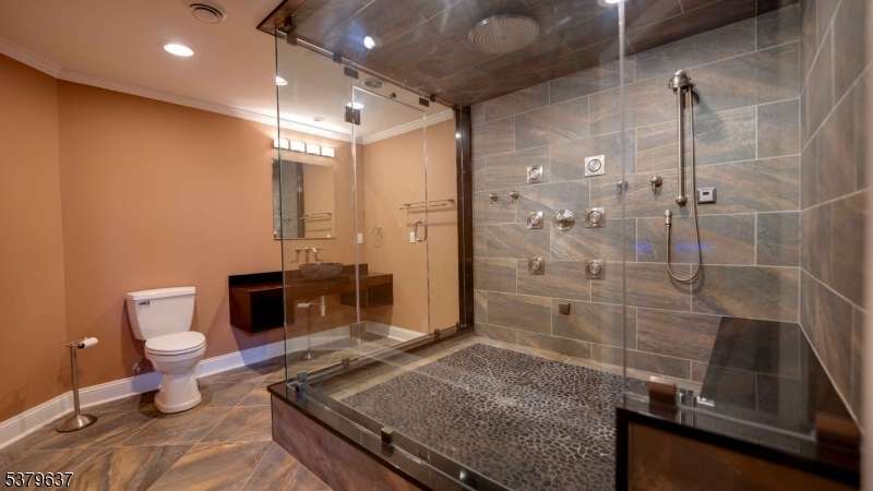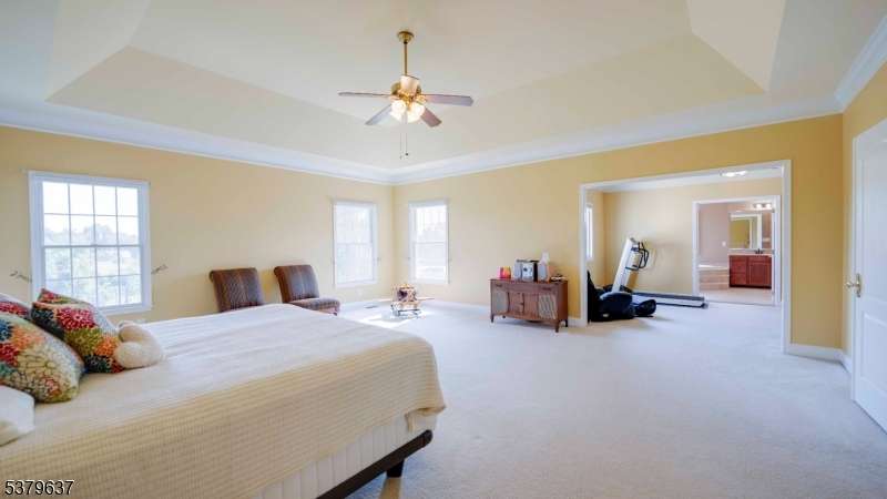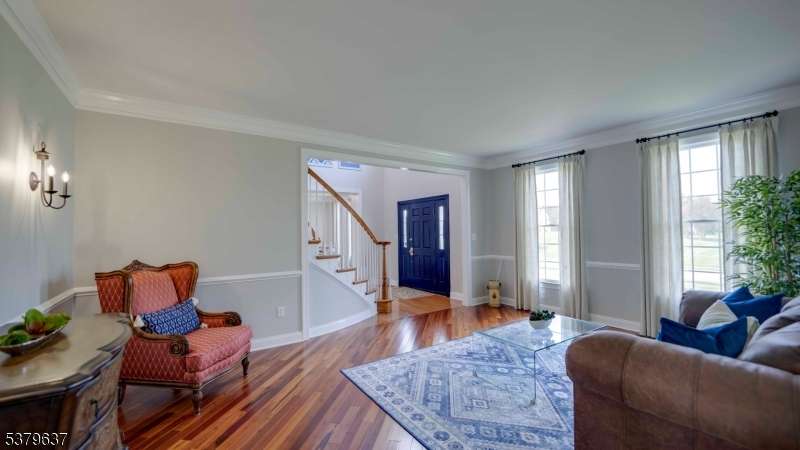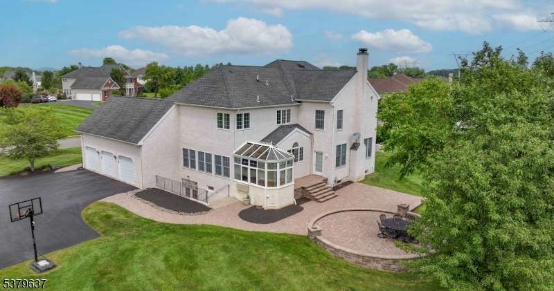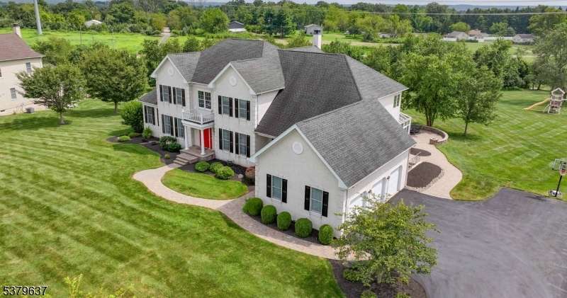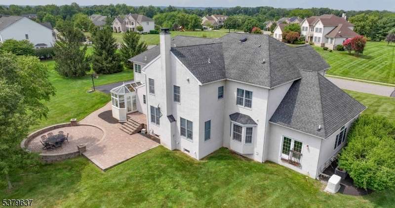 Introducing 10 Claridge Lane, an expanded Coventry model in the prestigious Hunterdon Hills Estates by Toll Brothers, it is offering over 7,000 sq. ft. of refined living space on one of the largest lots in the community. This residence blends architectural elegance with modern luxury, featuring 5 bedrooms and 6 full baths. The main level showcases a gourmet kitchen w/ a 10x3 island, Viking 6-burner range, dual ovens, and butler's pantry, flowing seamlessly into the sunroom, family room, formal living and dining rooms, and a striking conservatory. A versatile first-floor bedroom/office with an adjacent full bath enhances the home's flexibility. Upstairs, four bedrooms each feature ensuite baths, while the primary suite offers dual walk-in closets, a spa-inspired bath with soaking tub, and oversized shower. The walkout lower level is designed for entertaining, complete w/ a custom 12-ft live-edge bar, copper sink, beverage refrigerators, expansive wine cellar, home gym, and acoustically designed theater. A luxurious spa bath includes a 7x6 steam shower with rain head, river stone flooring, seamless glass, and mood lighting. Outdoors, enjoy a large multi-tiered paver patio, perfect for gatherings, overlooking the expansive backyard. Additional highlights include a GarageTek storage system, full-house standby generator, abundant natural light, and meticulously curated finishes. A rare opportunity to own one of the premier homes in Raritan Township's most desirable neighborhoods.