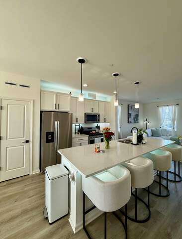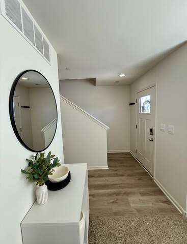 Almost Brand New! Stevenson High School! Newer complex! Corner unit! Private entrance!. Upgrades galore. Lives like a single family home. This captivating open floor plan includes 3 bedrooms, 2.5 baths, & a finished media/exercise room on the first level! The open concept main level includes 9' ceilings and a large island that is ideal for everyday living as well as gatherings! The expansive luxury kitchen overlooks both the front dining and back great room areas making it the perfect space to entertain. This gourmet kitchen includes quartz countertops, 42" flagstone cabinetry with soft close doors, crown molding and all stainless-steel appliances including a just delivered refrigerator. Plus there's a great pantry for all your Costco purchases. The great room leads out to an elongated deck and the first level features a bonus room off the large 2-car garage with additional guest parking. Top floor features 3 bedrooms - primary bedroom suite includes a large walk-in closet & private spa-like bathroom with a walk-in shower. Plus a laundry area so no climbing stairs & tons of storage! The technology package allows you to monitor and control your home from the comfort of your sofa or from 500 miles away and connects to your home with your smartphone, tablet or computer. Home life is hands-free. It's never been easier to settle into new routine. Set the scene with your voice, from your phone, through the Qolsys panel which you can schedule it and forget it. Your home will always await you with your personalized settings. Plus, custom blinds just installed thru-out! Shopping/restaurants/schools/public transportation just minutes away. Available almost immediately. Longer lease welcome. Credit/background check/landlord references & income verification required. Set up your tour today! You won't be disappointed.