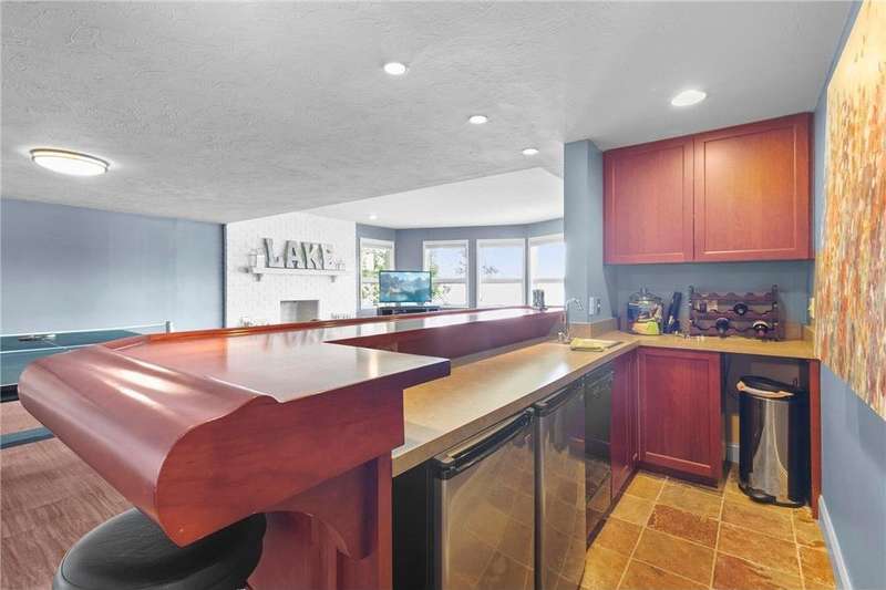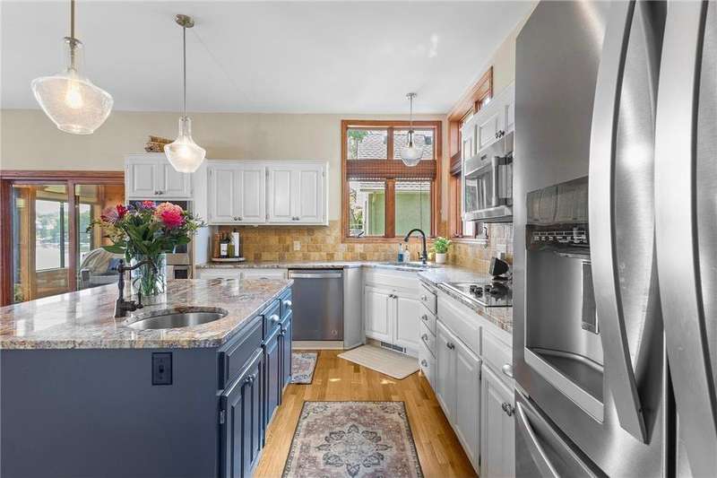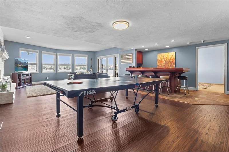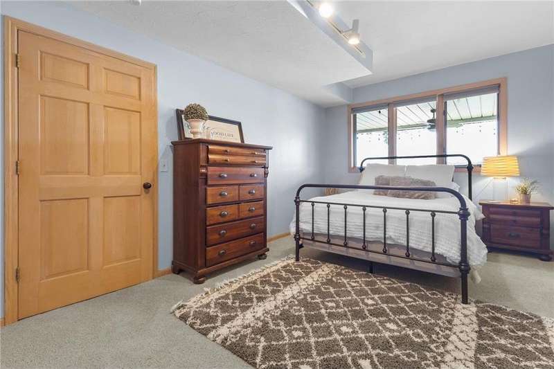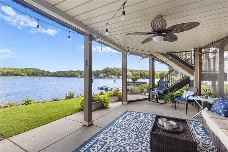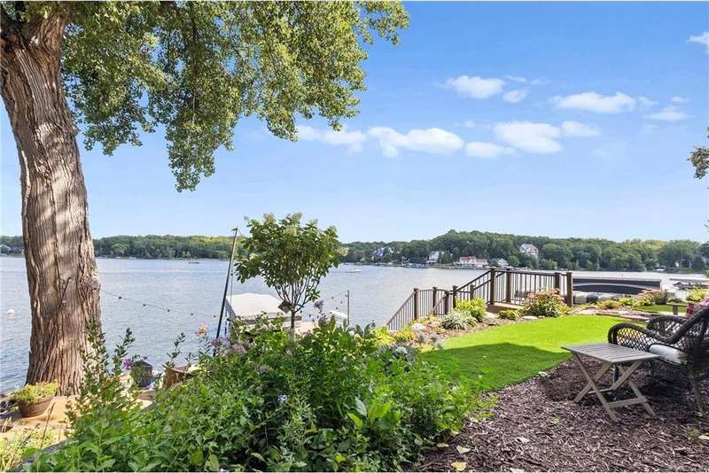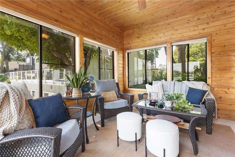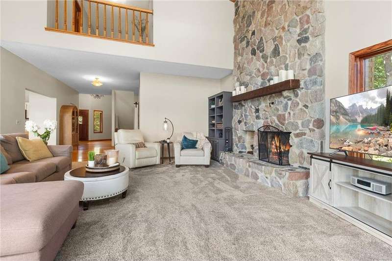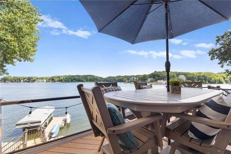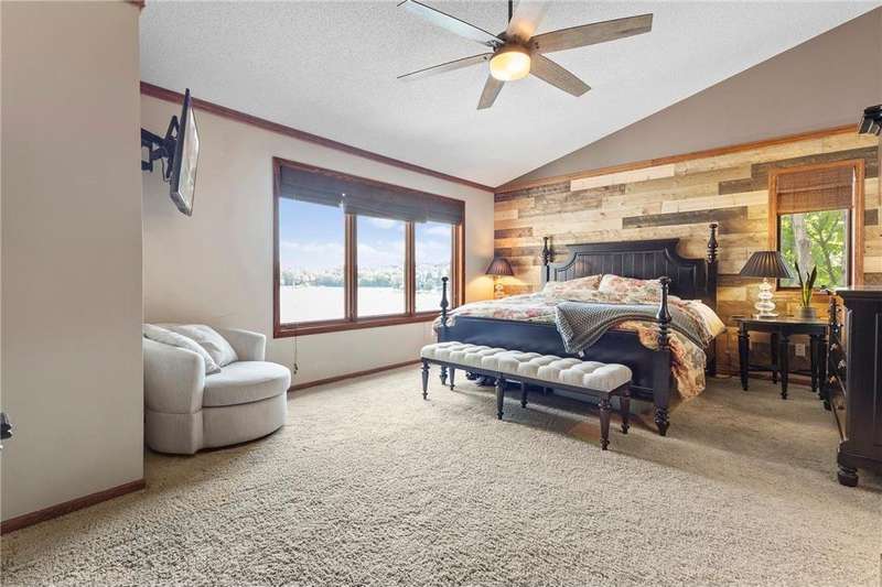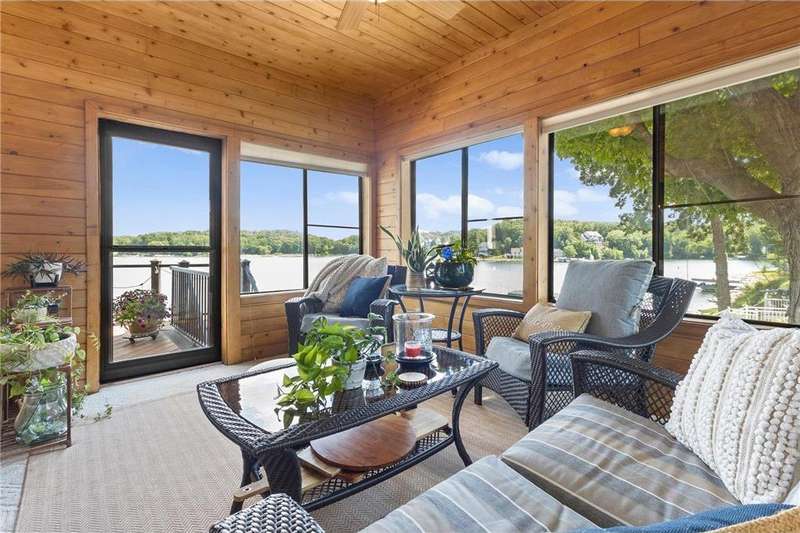 Spectacular lakeshore retreat with 99 feet of sandy shoreline and panoramic sunrise views! Nestled in a premier location on the lake, this walkout two-story home offers an incredible vantage point for 4th of July fireworks, big water views, and peaceful privacy. The heart of the home features a dramatic two-story great room with expansive windows that frame the lake and fill the space with natural light. Multiple levels provide versatile entertaining spaces, including a three-season porch, perfect for morning coffee or evening gatherings. Whether you're lounging by the shore, taking in the sunrise, or hosting family and friends, this property is designed for year-round enjoyment of lake life. Don't miss this rare opportunity to own one of the most desirable lots on the lake!