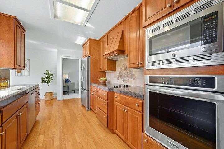 Immaculate! Ready to move right in! Granite kitchen, custom cabinets, stainless appliances, built-in over, and gas cooktop with hood; double pane windows throughout, beautiful remodeled baths, hardwood floors, custom doors, new interior paint, and new carpeting; Excellent floorplan with a formal entry, open breakfast room, adjacent family room, laundry room, dining, and living rooms, and a separate quiet home office with a separate entry, ideal for private conference calls, un-interrupted work, or loud teens! Big quiet backyard with an entertainers patio for outdoor dining and grass for the kids to play. Prime location--walk steps to charming downtown Los Altos, groceries, restaurants, and to Los Altos High, a little further to top-rated Almond Elementary, and an easy bike ride to Egan Middle! Bike to Caltrain, Google, Apple, Meta, Intuit, Nvidia, and to ALL of the great companies; do not miss this one!