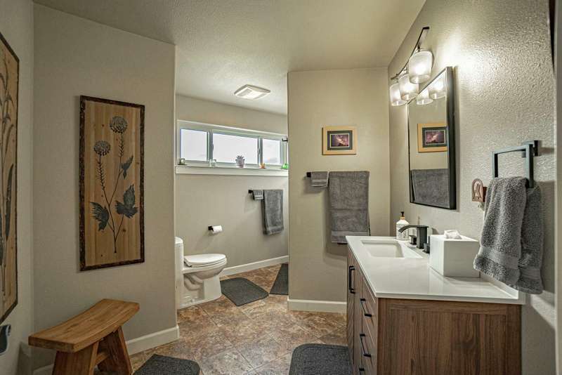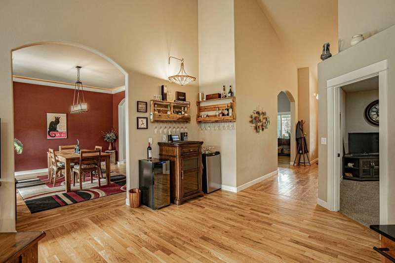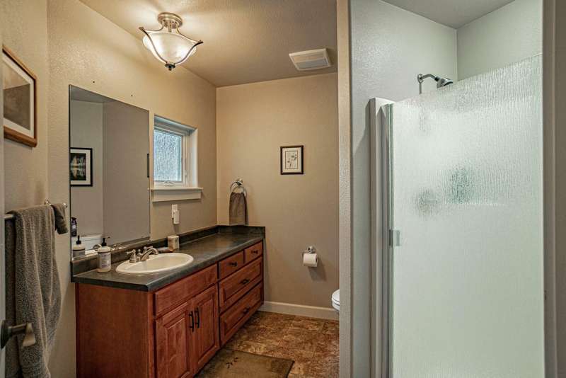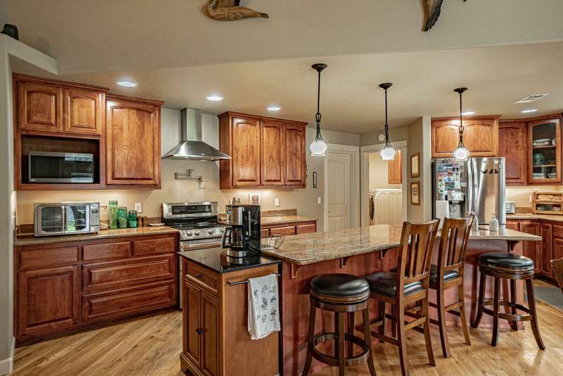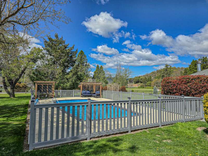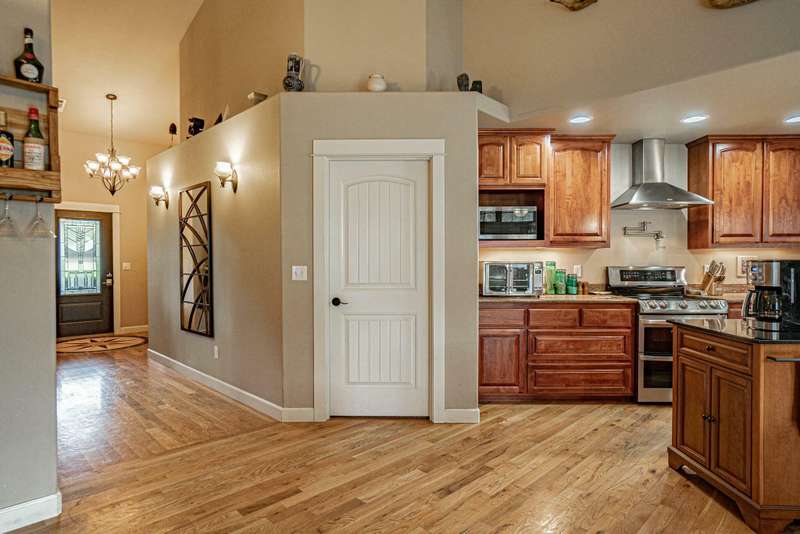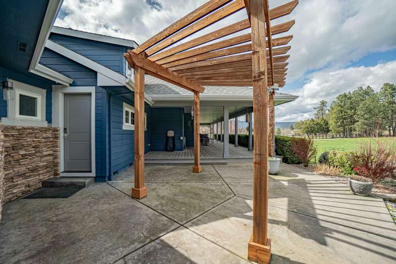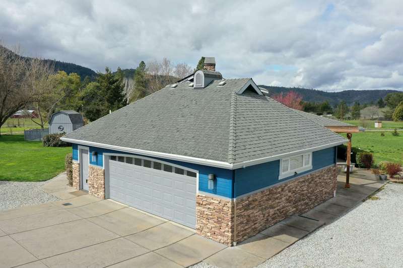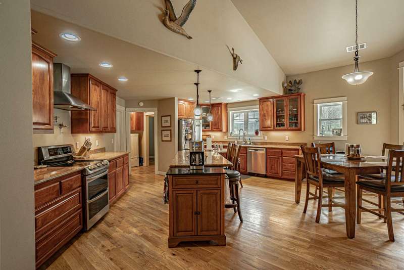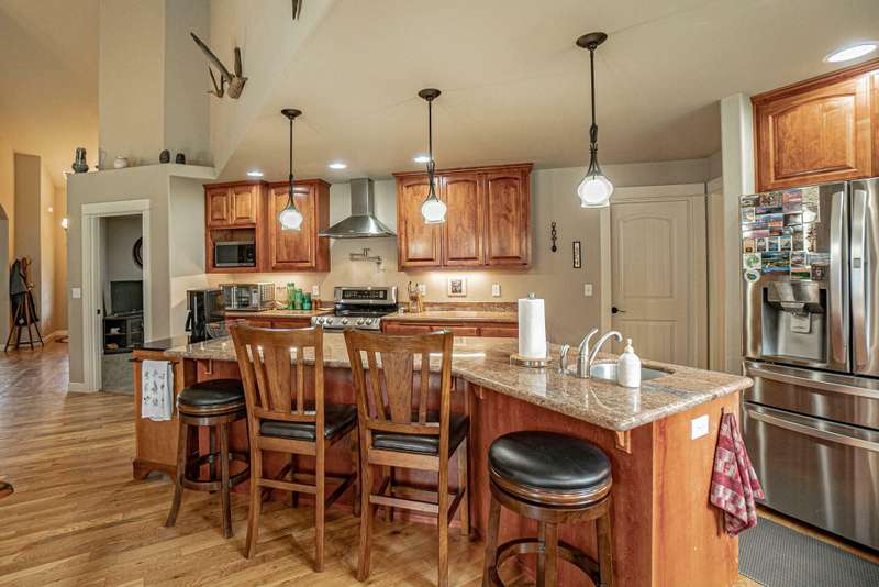 Stunning single-level home, built by Chamberlain Homes in 2007 located on Old Stage Road. Property boasts a custom design w/an additional private living space, w/separate entrance, bedroom & mini kitchen. Enjoy the in-ground swimming pool with a Safe-T-Cover. Inside, you'll find upgrades, including vaulted ceilings, living room w/wood-burning stove, & modern kitchen complete w/island, granite countertops, custom cabinetry, stainless steel appliances, & real hardwood flooring. The home also offers a 2 car garage, RV parking, shed and a small barn. The master suite has its own wood-burning fireplace, walk-in closet, walk-in shower w/dual shower heads & jetted tub. The fully fenced acreage provides plenty of space & the powered security entry gate adds privacy. Outside, you'll enjoy approx 1,100sqft of covered Trex decking in front, w/stampled concrete in the front & back sides of the home. The property is beautifully landscaped w/timed sprinklers, solar panels & a cool north-facing deck