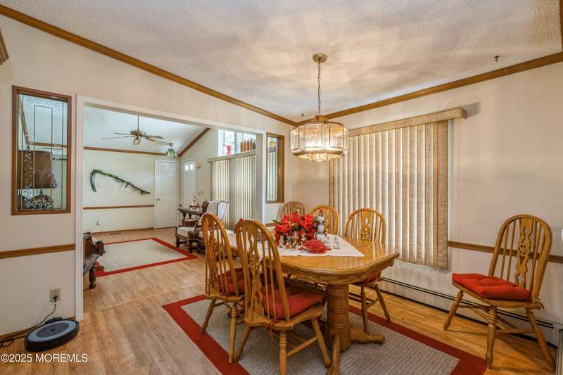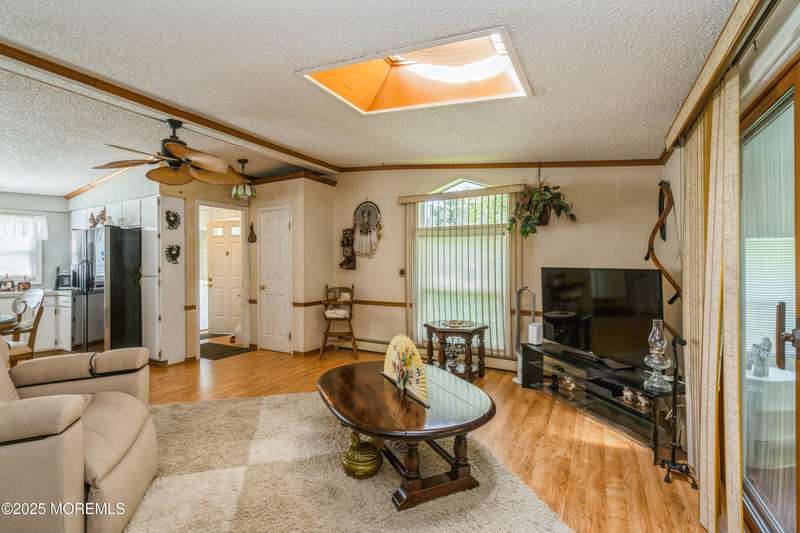 Great opportunity in beautiful and well-maintained Jensen's Deep Run adult community in Cream Ridge! Welcome to low-maintenance, peaceful living in this spacious, move-in condition 3 bedrm, 2 bath home. Thoughtfully designed for comfort and convenience, this single-level home features a spacious easy-flow floor plan. The large, bright eat-in kitchen with an abundance of countertops and double sinks flow right into the family room which then leads to the attached sunroom! There is also a formal living and dining room. The proud owner can enjoy their primary bedroom suite retreat with a private en-suite bathroom featuring a jetted tub, skylights and a shower stall. The laundry area has access to the side yard. Have peace of mind with newer roof, windows, gas heating, air conditioning, tankless hot water heater and more. Completing this well rounded opportunity are cathedral ceilings, sky lights, ceiling fans, easy clean laminate floors, double wide driveway, attractive landscaping and more. The absolutely beautiful, peaceful and large yard is ideal for outside relaxing! Quick closing possible!