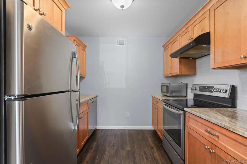 This beautifully renovated Bradford model offers one-level living at its best in Jefferson Village, a sought-after 55+ age-oriented community. Located on a cul-de-sac, this impeccable home offers everything you could ask for in comfortable and easy living. This desirable one-level end unit has no stairs and no one living above or below. Step inside to a spacious living and dining area showcasing luxury vinyl flooring, recessed lighting, and a sliding glass door that opens to your own patio with awning. The updated kitchen is appointed by newer cabinetry, granite countertops and stainless-steel appliances that have been rarely used. The primary ensuite offers double closets, new vinyl flooring and a beautifully remodeled bath. The adjoining second bedroom also features new flooring and convenient pull-down stairs to the attic. A renovated hall bath is completed by the in-unit washer and dryer for added ease. Additional highlights include a detached one-car garage just steps away, and a brand-new (2025) central air conditioner and air handler. Monthly common charges include oil heat, hot water, and basic cable, along with year-round exterior maintenance. Residents of Jefferson Village enjoy a vibrant lifestyle with a clubhouse offering year-round social activities plus a fitness center, library, billiard/dart room and arts and craft room. Outdoor amenities include an outdoor community pool, tennis and pickleball courts, bocce and a large garden area. Conveniently located near shopping, restaurants, medical facilities, and the Taconic State Parkway, this move-in-ready home offers the best of comfort, convenience and community.