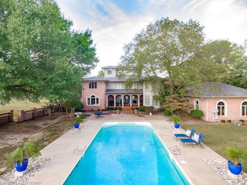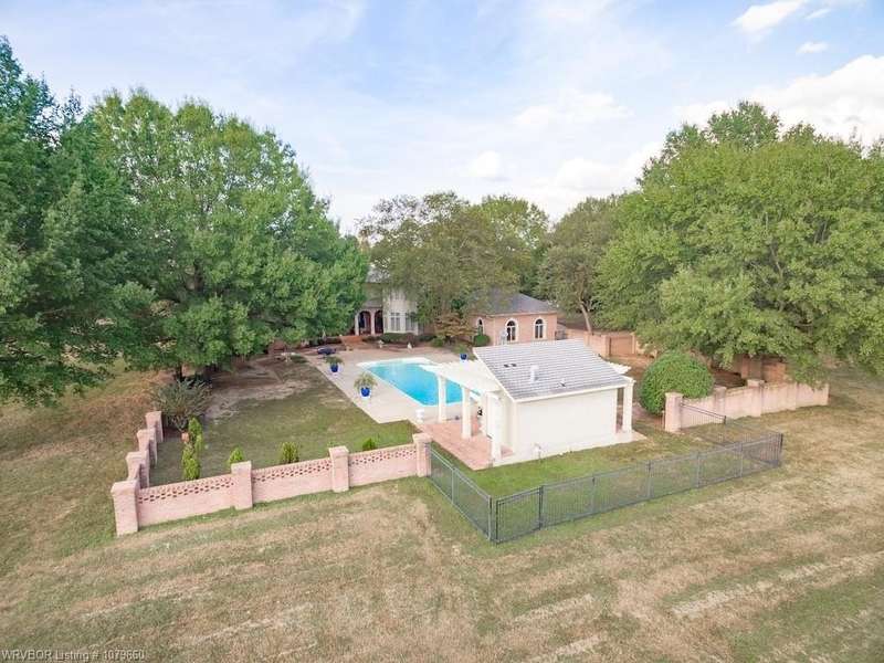 Peaceful and Private in the heart of the River Valley! This beautiful home boasts a private drive, in-ground pool, 2-story foyer with custom chandelier and iron work, large and lush landscaping all around, 2 Master Suites, detached garage with a shower, pool storage area, East and West courtyards, finished basement, Observatory room on the 4th floor with 360 degrees view of the property and the beautiful Fort Smith skyline. Attention to every detail make this home exquisite inside and out. The timeless design is a must see!