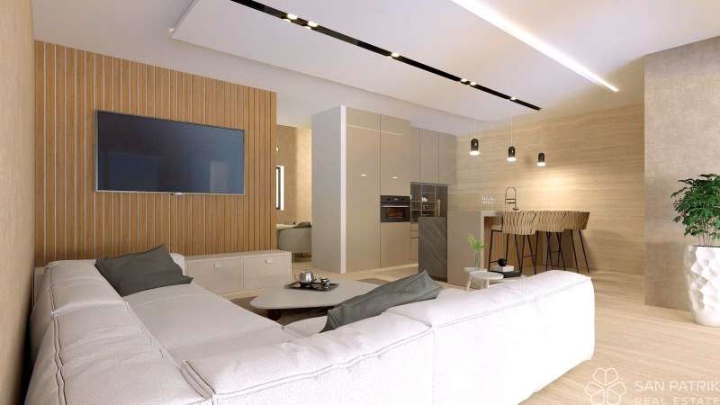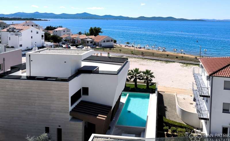 The penthouse is the highlight of the residence. This spacious unit has its own entrance, garage, and private lift. It features an open-plan living room with kitchen and dining area, three bedrooms with en-suite bathrooms and walk-in closets, a covered terrace overlooking the sea, and a rooftop terrace with a pool and panoramic views of the Adriatic and Zadar archipelago. This is a home that ensures complete privacy and a unique seaside lifestyle.