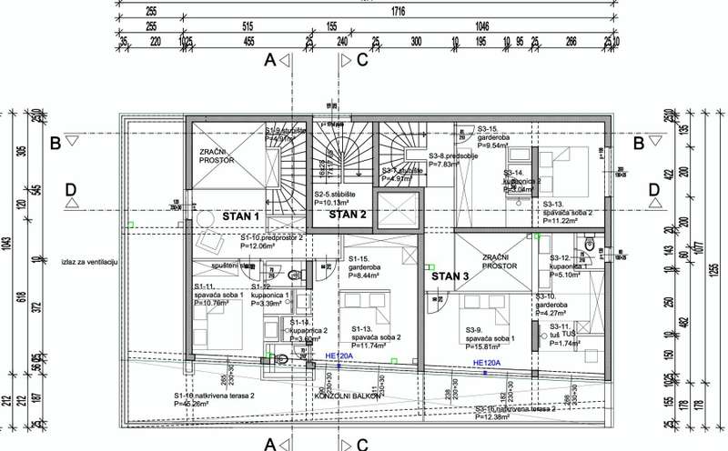 Apartment S-3 - Duplex (Ground Floor + 1st Floor) - living area 104.99 m2 (2 bedrooms + 2 bathrooms + WC) + covered terrace 1 (45 m2) + covered terrace 2 (12 m2) + garden with jacuzzi (40 m2) + two outdoor parking spaces; net usable area 144.77 m2 = EUR 668,850
