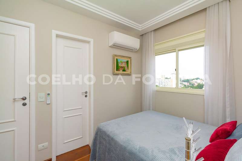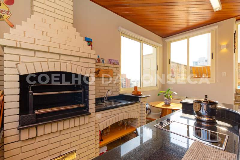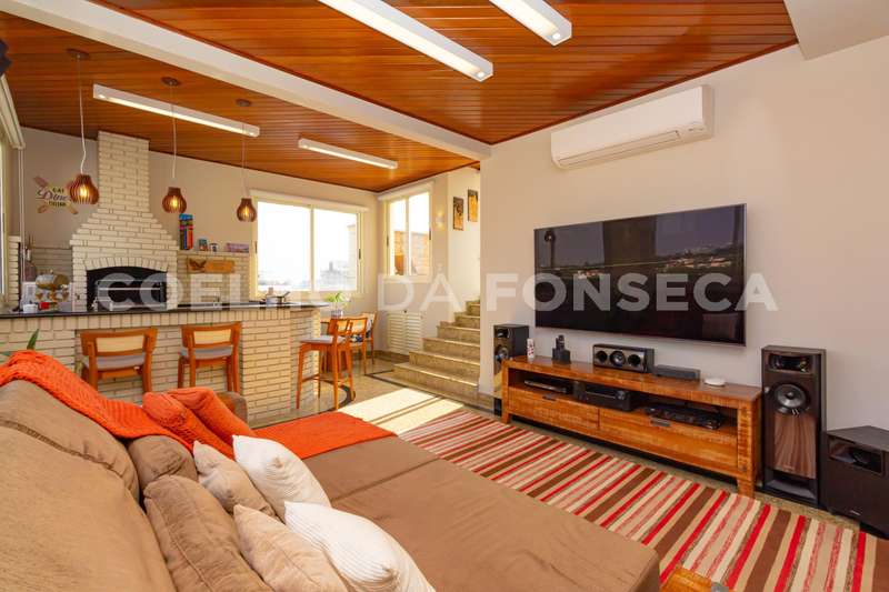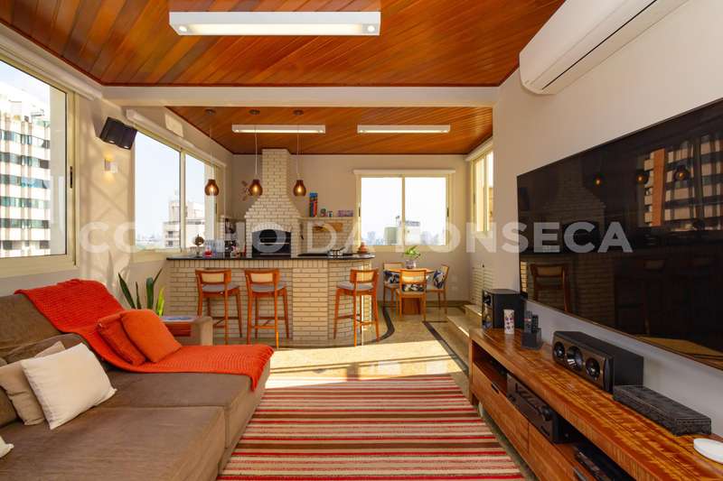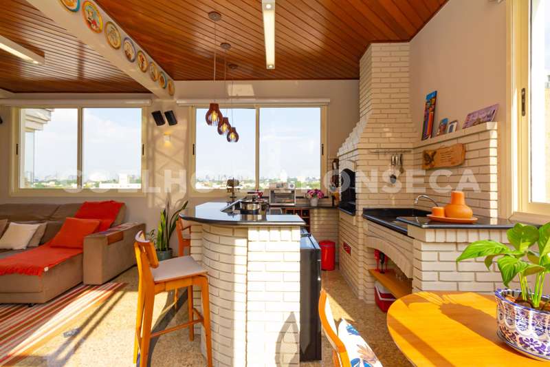 Cobertura duplex com piscina aquecida e espaço gourmet com uma vista deslumbrante. No piso da cobertura conta ainda com um spa hidromassagem e banheiro completo, uma sala de tv, amplo home office e churrasqueira. No pavimento inferior, o living foi ampliado com a abertura do terceiro dormitório onde o piso é de madeira. Ar condicionado. Uma generosa suíte master com dois closets recebeu o espaço cedido por um dos dormitórios e ganhou dois banheiros. Cozinha bem equipada, uma área de serviço funcional e um lavabo na área social. Na garagem, um depósito e três vagas escrituradas. Marque agora uma visita.