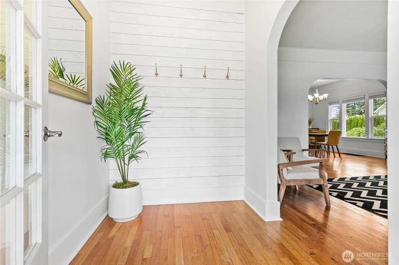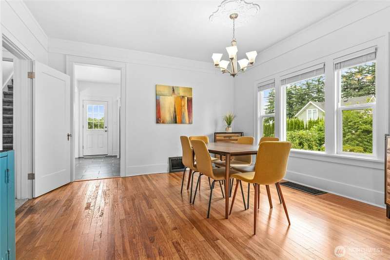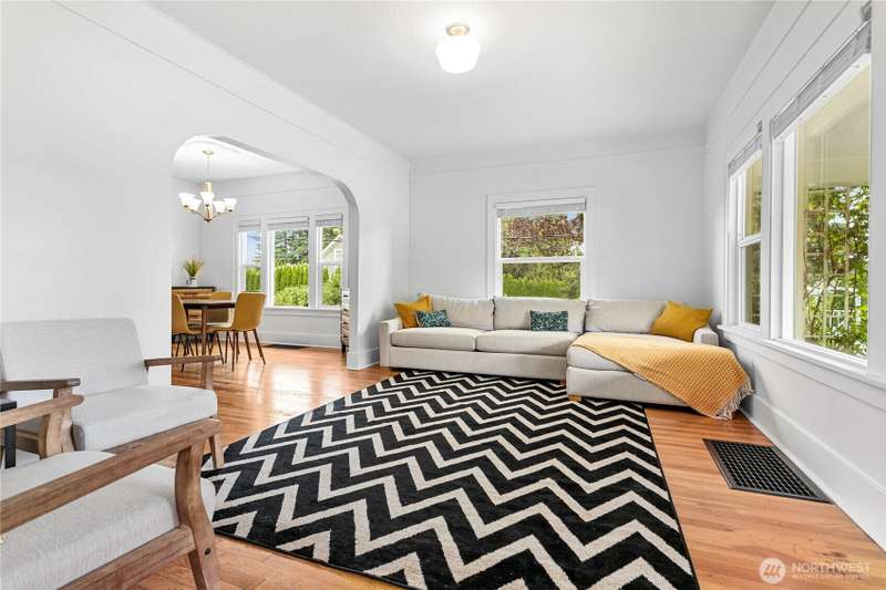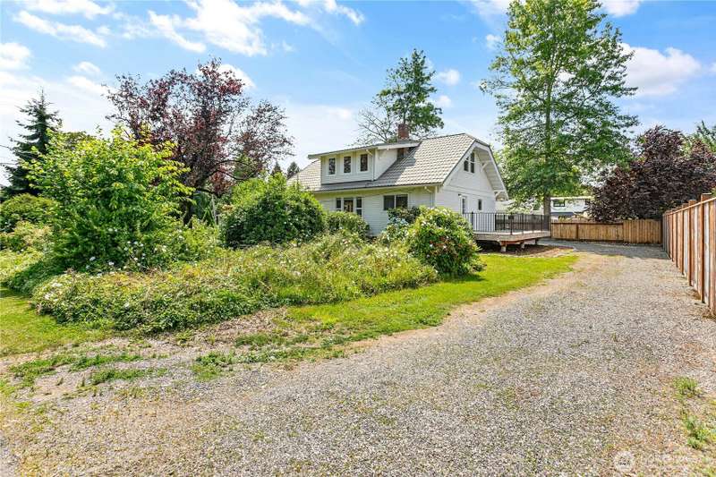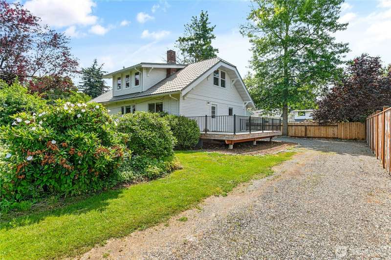 This beautiful 1920's home retains its unique charm & character w/ original hardwood floors, arched walkways, 9' ceilings, & door hardware. Tastefully updated with tile, shiplap, and new carpet. Plus, newly finished upper and lower floors. Take advantage of the large lot (over 1/3 acre) offering the opportunity to build garage/shop and even two ADU's (buyer to verify), or just enjoy the large lawns with mature landscape and heirloom flowers. Large laundry/mud room with brand new washer &dryer, new windows and electrical! 50-year metal roof and metal siding, large rec room, 2 large decks, gas forced air heat, and tons of storage. Excellent location on the West side of Lynden and minutes from parks & local shopping.