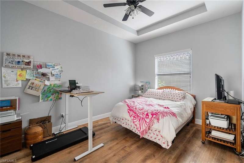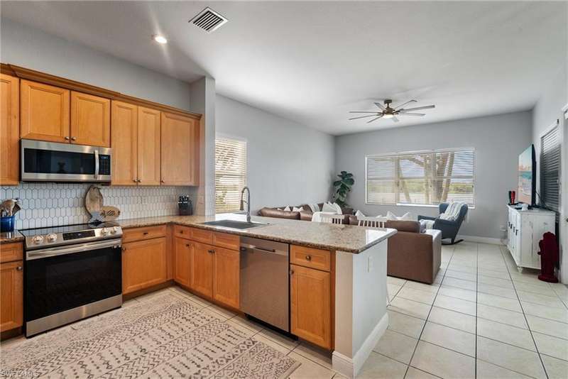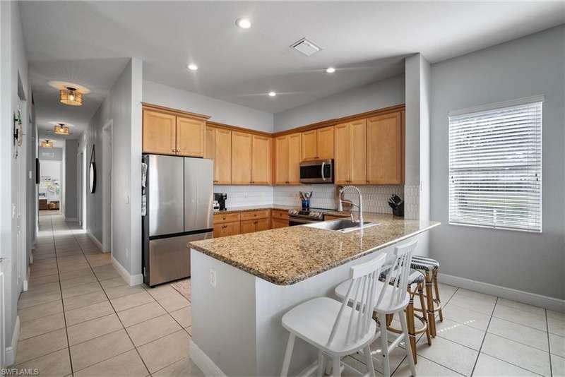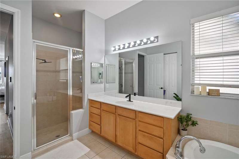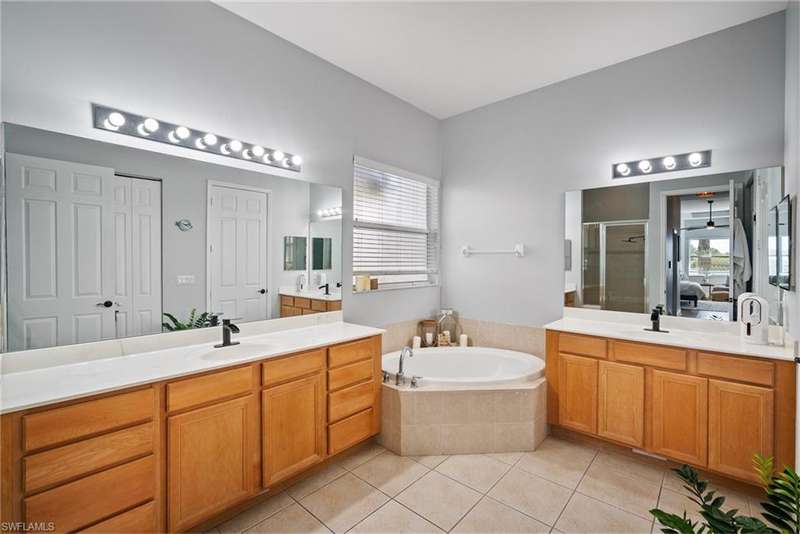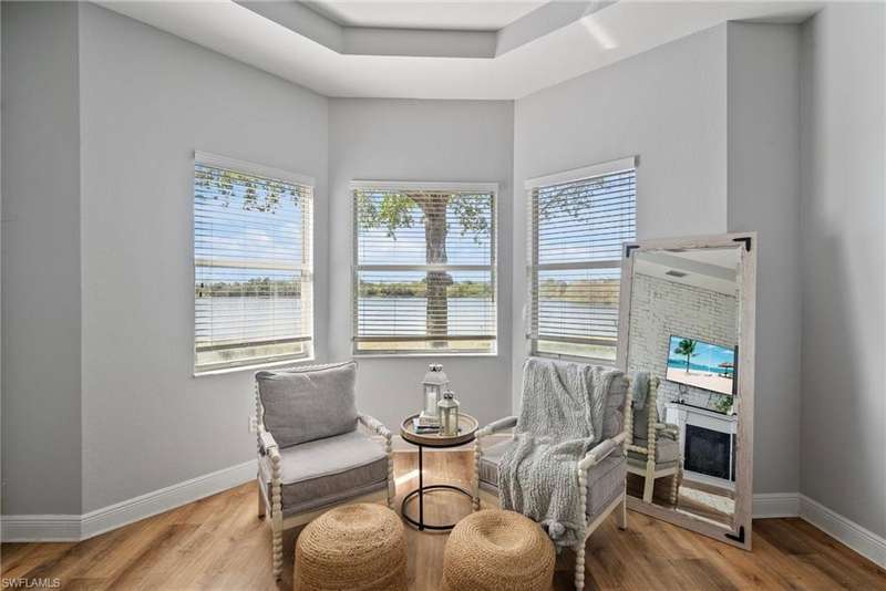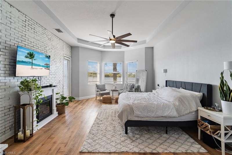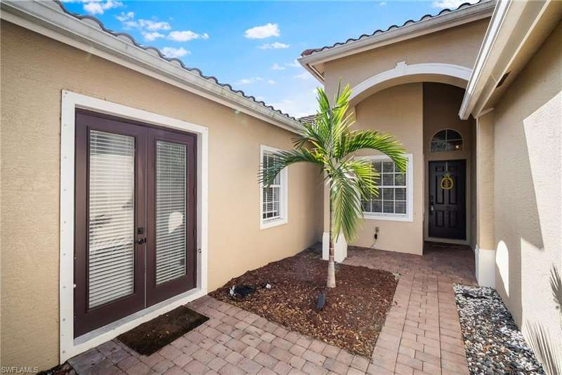 FREE ONE YEAR HOME WARRANTY WITH PURCHASE! Discover the perfect blend of luxury and comfort in this exceptional home located in the highly sought-after Valencia Country Club. Nestled at the end of a quiet cul-de-sac, this home offers 4 bedrooms and 2.5 baths, with nearly 2,800 sq. ft. of beautifully designed living space. Step past the 3-car courtyard garages through the elegant courtyard entry into an inviting interior featuring tile floors throughout the main living areas and luxury vinyl plank flooring in the bedrooms. The kitchen features granite countertops, stainless steel appliances, a tile backsplash, a spacious breakfast bar, and a cozy breakfast nook. The primary bedroom is a luxurious retreat, showcasing a charming bay window with a sitting area, a sophisticated tray ceiling, and an ensuite bath designed for indulgence with dual separate vanities, a deep soaking tub, and a walk-in shower. Large windows and multiple doors seamlessly connect the indoor spaces to the outdoors,