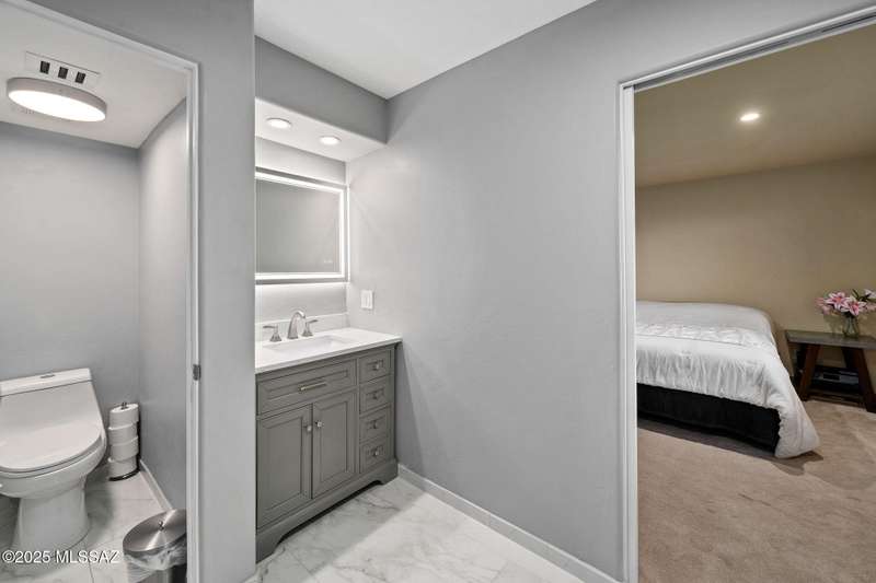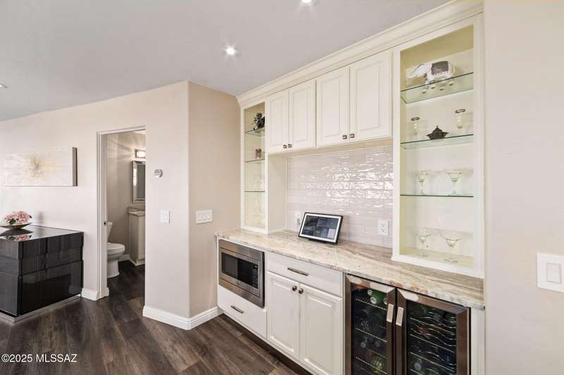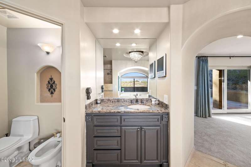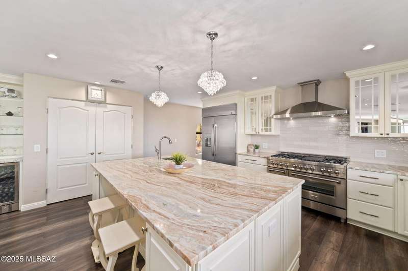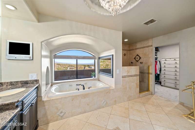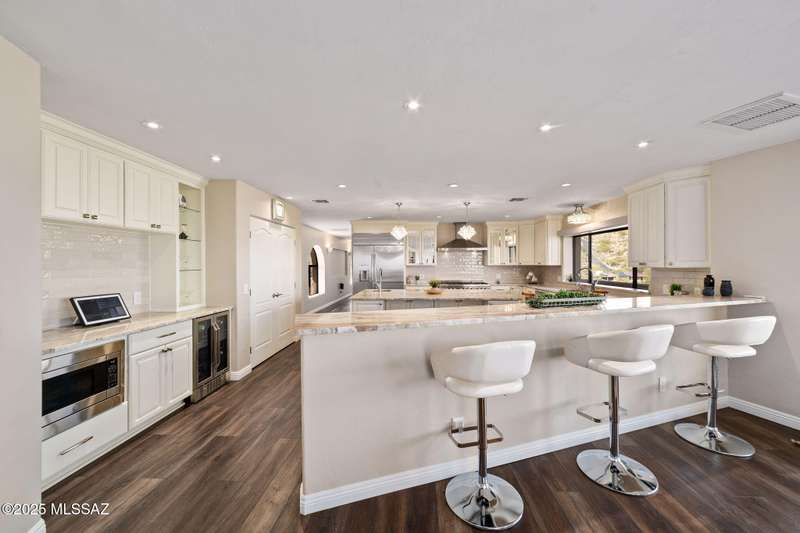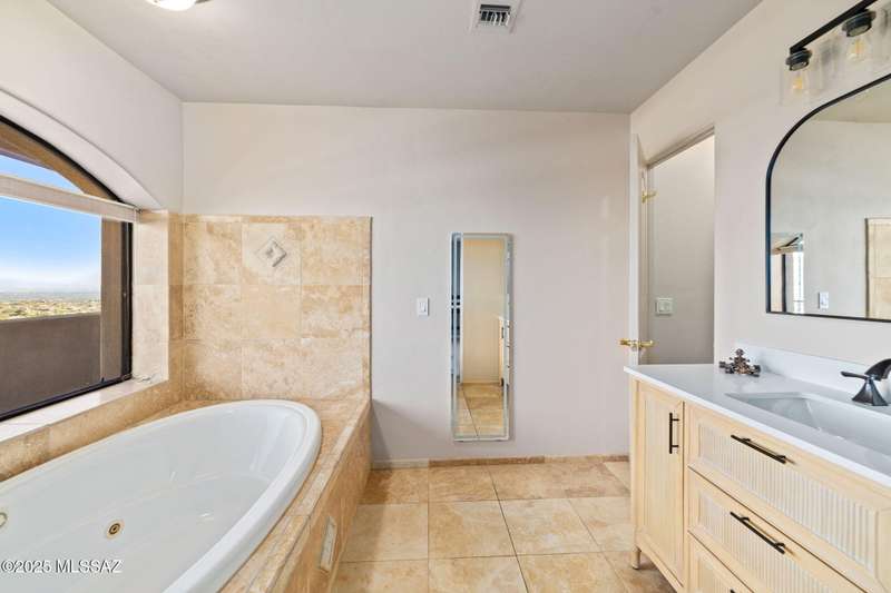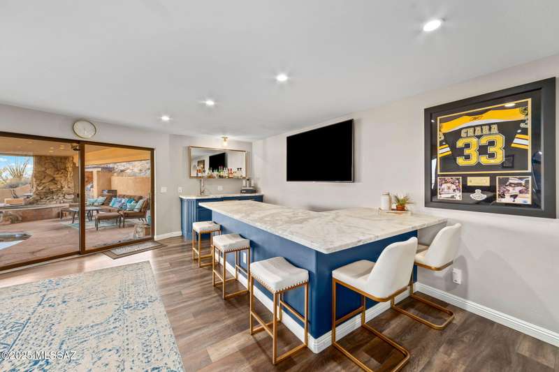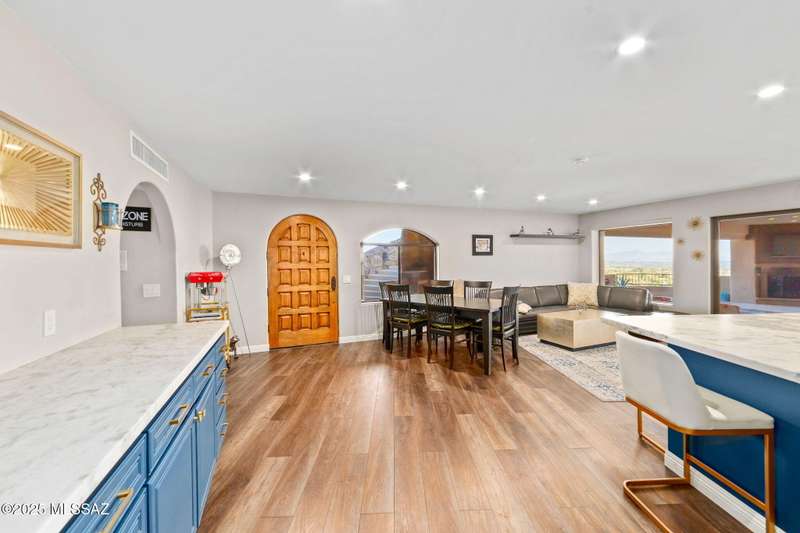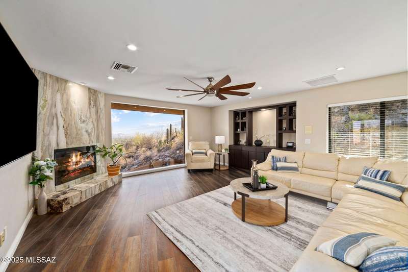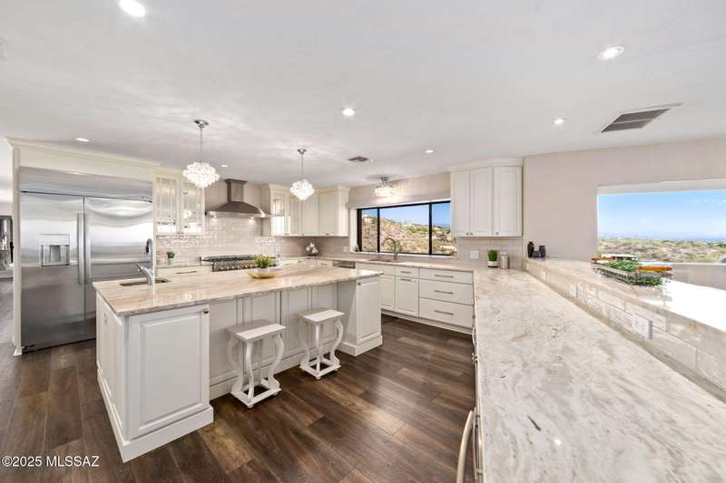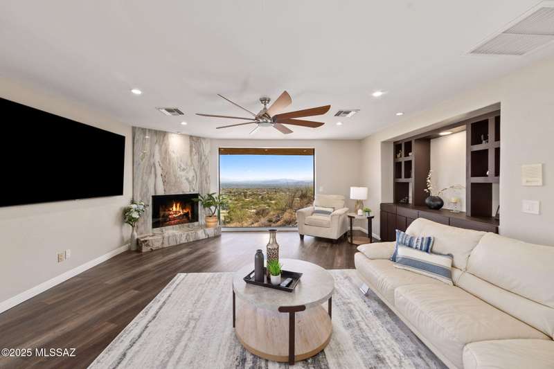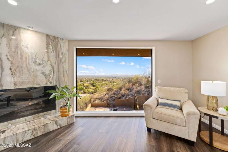 From the moment you arrive, this signature residence makes a lasting impression! A paver-lined driveway welcomes you into a fully remodeled, estate-grade home that perfectly balances refinement with relaxed desert living. Set against the backdrop of panoramic city lights and sweeping mountain ranges, this is not just a home -- it's a vantage point on life! With some of the most commanding views in all of Southern Arizona, this rare offering delivers sophistication, serenity, and soul at every turn. Inside, the home has been lovingly refreshed from top to bottom with a bold, contemporary spirit. Designer fixtures, artful materials, and thoughtful finishes unite to create a space that feels both polished and personal.