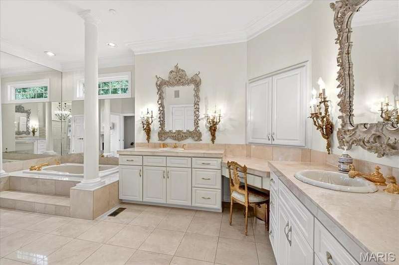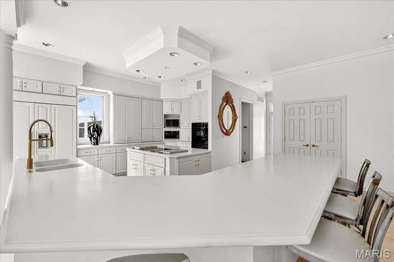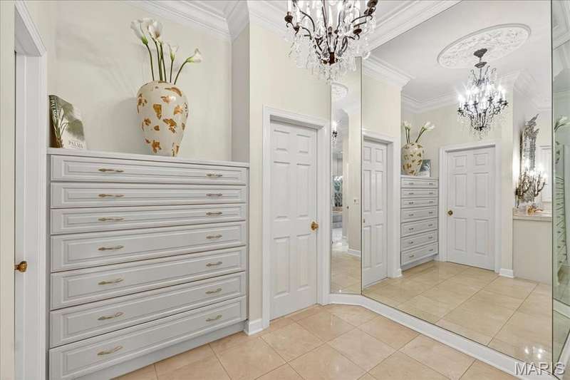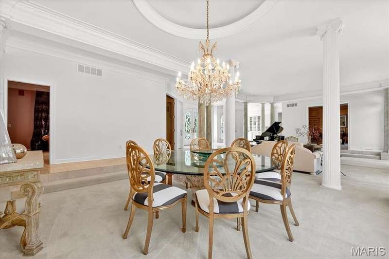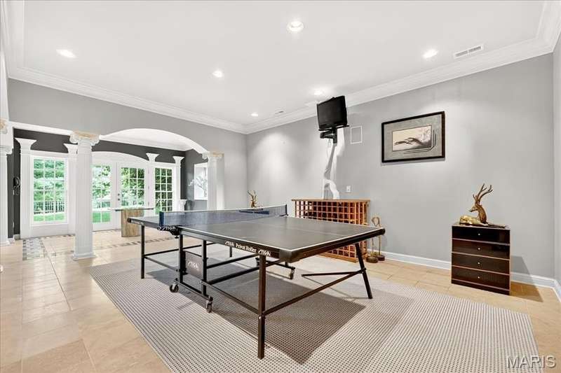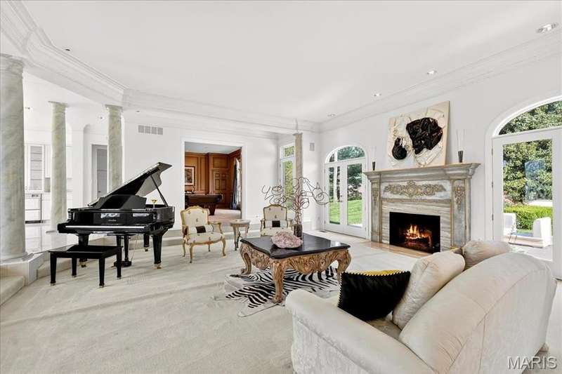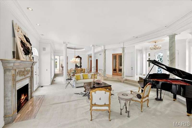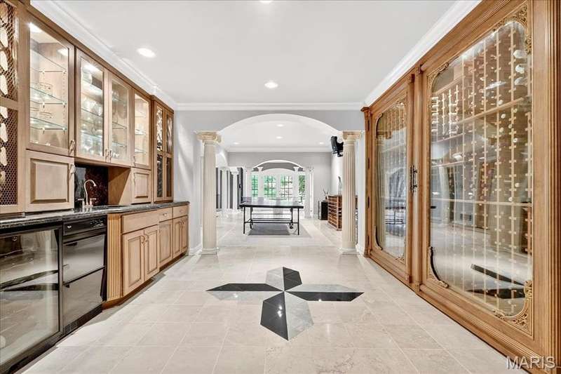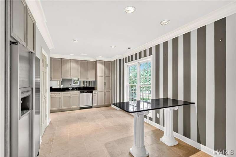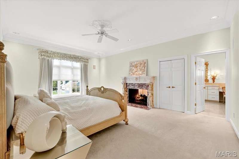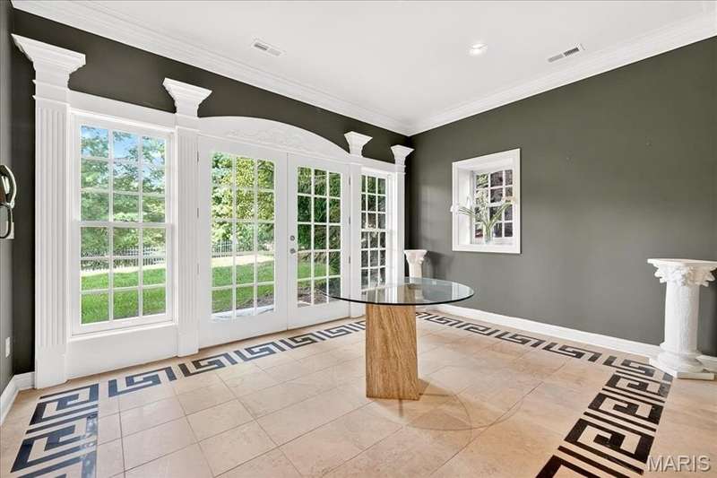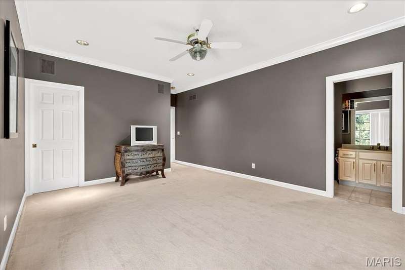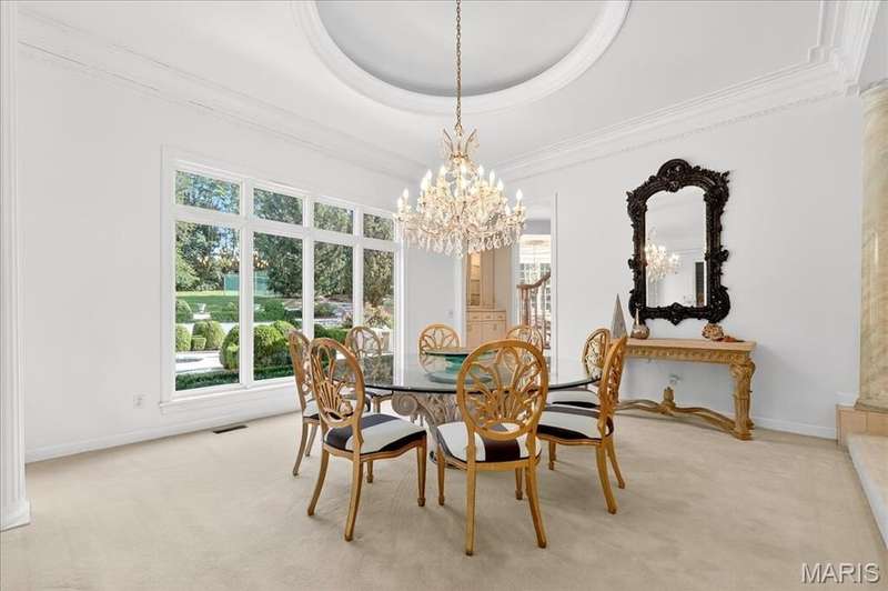 Poised for transformation, this Town & Country estate rests on nearly 2 beautifully landscaped acres in an exclusive gated enclave. Surrounded by trees, the lot provides unparalleled privacy, while the home’s generous square footage, resort-style amenities, and thoughtfully designed layout, provides a perfect personalization opportunity. Designed for entertaining, the gracious foyer invites you into the expansive living room and dining room with floor-to-ceiling windows overlooking the stunning backyard—complete with a pool with waterfalls, tennis court, and lush landscaping for your personal oasis. The spacious eat-in kitchen offers abundant cabinetry, counter space, and a breakfast room with a built-in banquette. A cozy den is ideal for movie nights, while the billiards room provides a versatile space for games, an office, or library. The main-floor primary suite, with a gas fireplace offers dual walk-in closets, soaking tub, separate shower, and dual vanities. Upstairs are two bedrooms with a shared bath, one en-suite, and a flexible fourth bedroom or creative studio. The walk-out lower level checks all the boxes with a wine cellar, theater room, guest bedroom, full bath and kitchen. Additional highlights include a spacious first-floor laundry and mudroom, a secondary service entrance, and an oversized four-car garage. With its timeless setting and impressive grounds, this property provides the canvas for a new homeowner to create their own custom masterpiece.
