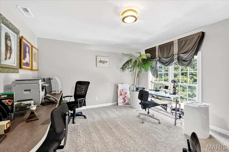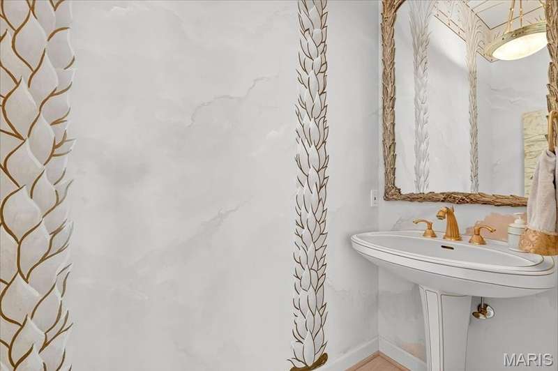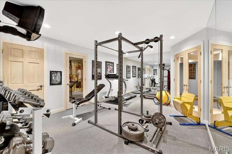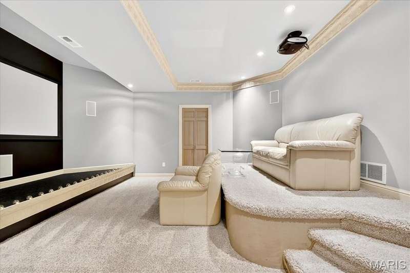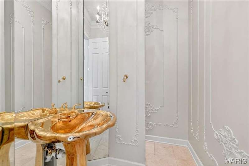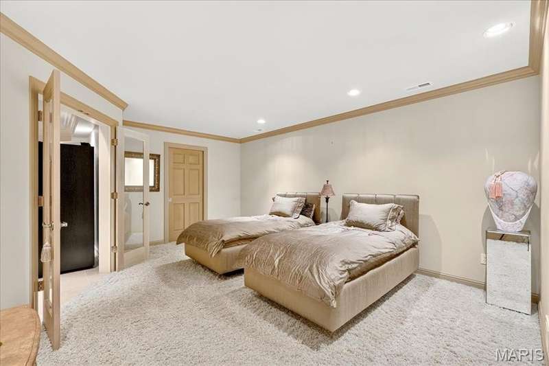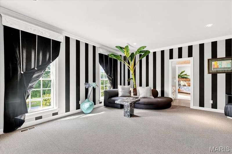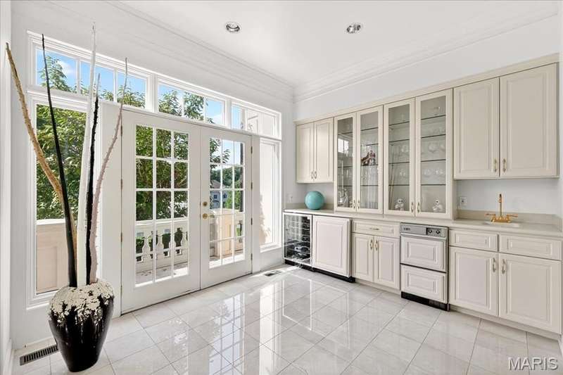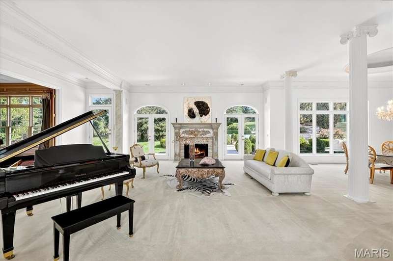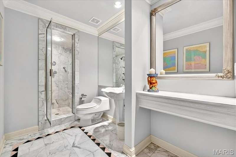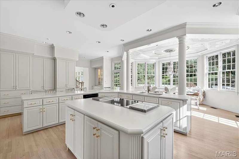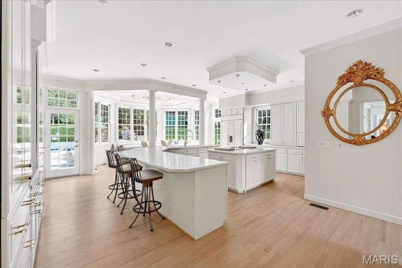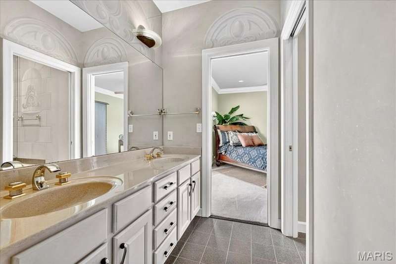 Poised for transformation, this Town & Country estate rests on nearly 2 beautifully landscaped acres in an exclusive gated enclave. Surrounded by trees, the lot provides unparalleled privacy, while the home’s generous square footage, resort-style amenities, and thoughtfully designed layout, provides a perfect personalization opportunity. Designed for entertaining, the gracious foyer invites you into the expansive living room and dining room with floor-to-ceiling windows overlooking the stunning backyard—complete with a pool with waterfalls, tennis court, and lush landscaping for your personal oasis. The spacious eat-in kitchen offers abundant cabinetry, counter space, and a breakfast room with a built-in banquette. A cozy den is ideal for movie nights, while the billiards room provides a versatile space for games, an office, or library. The main-floor primary suite, with a gas fireplace offers dual walk-in closets, soaking tub, separate shower, and dual vanities. Upstairs are two bedrooms with a shared bath, one en-suite, and a flexible fourth bedroom or creative studio. The walk-out lower level checks all the boxes with a wine cellar, theater room, guest bedroom, full bath and kitchen. Additional highlights include a spacious first-floor laundry and mudroom, a secondary service entrance, and an oversized four-car garage. With its timeless setting and impressive grounds, this property provides the canvas for a new homeowner to create their own custom masterpiece.