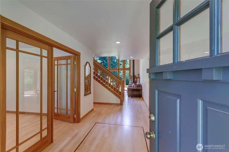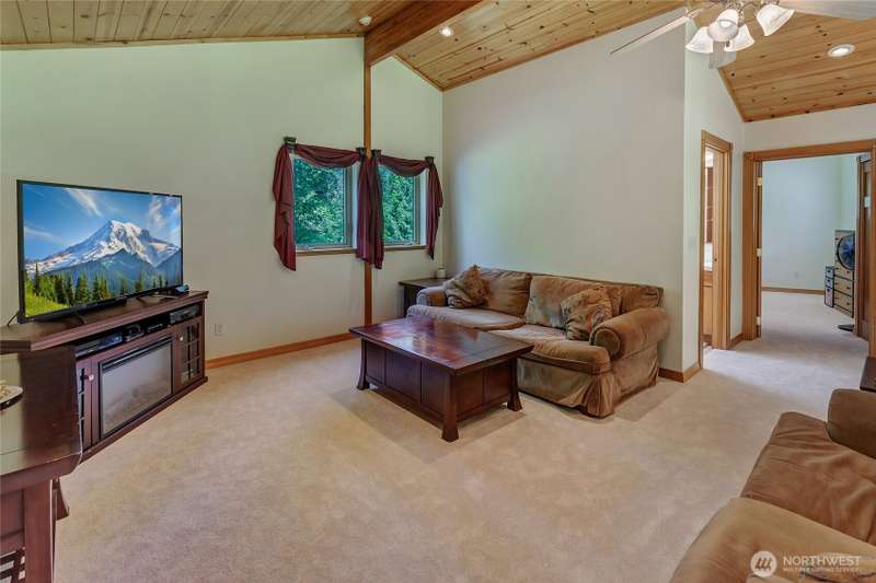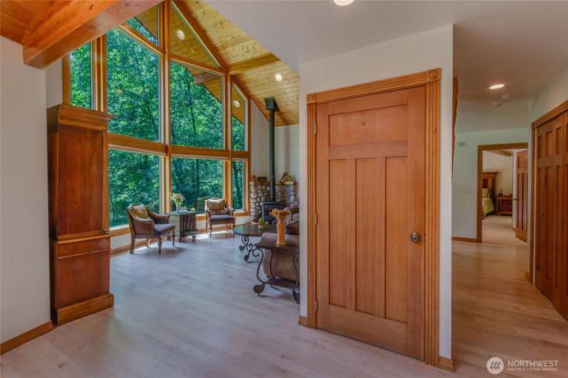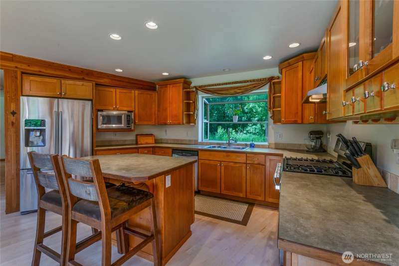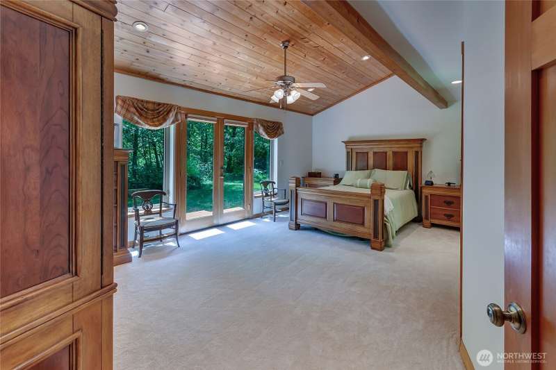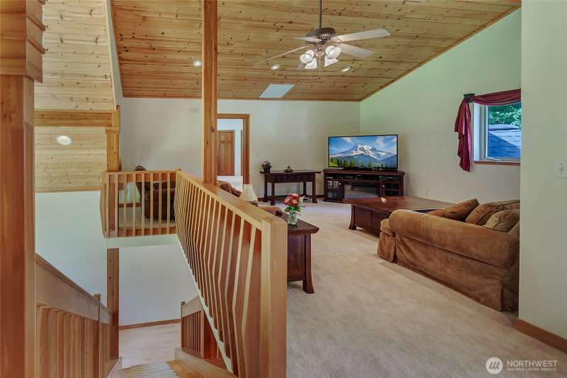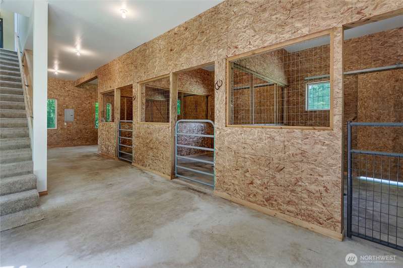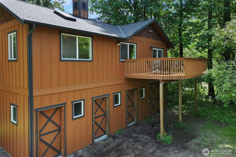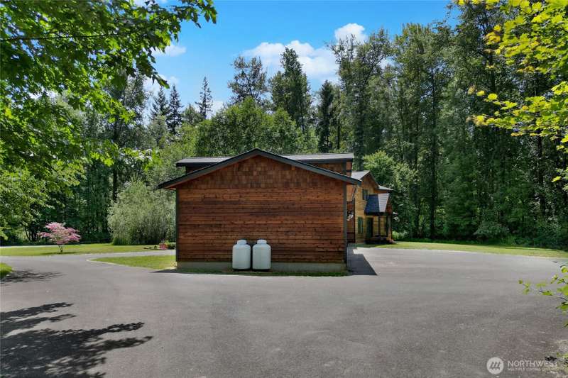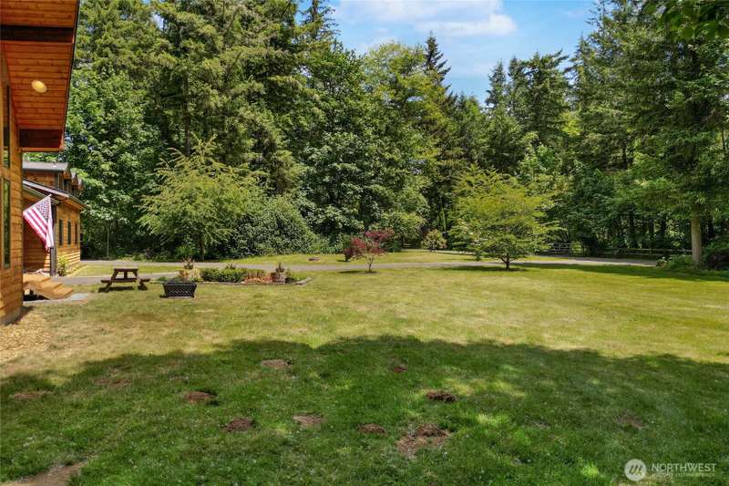 Step into your own PNW retreat w/this original-owner Lindal Cedar Home, exuding rustic charm & modern comfort*Nestled on a park-like 5-acre parcel with two access points*Main residence (2386 SF) boasts vaulted T&G ceilings that enhance the spacious, cabin-like ambiance*Expansive windows provide natural light, highlighting the finishes & create an inviting atmosphere*Features include a master on main level w/attached bath, NEW roof, NEW carpet, fresh exterior stain, heat pump, & 3-car garage*Detached barn (ADU) includes 3 stalls, versatile shop area, & 1,100 sq ft of living space on 2nd floor, complete w/full kitchen + bath*Perfect for a guest suite or MIL*Situated on a dead-end paved cul-de-sac*Ideal setting for privacy & country living