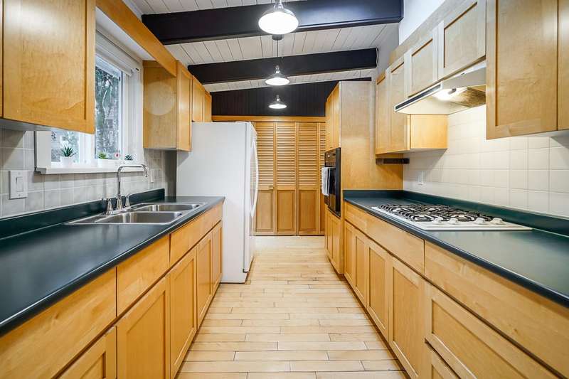 Cozy rancher on a large 10,000sqft Lot. Perfect for first time buyers/investors or build your dream home on this 60'x170' flat rectangular Lot located on a quiet street. No easements or right of ways. This charming 3 bed/1 bath home features timber beams thru-out, lovely wood floors, updated bathroom, tastefully painted, updated lighting and window blinds. Located in an outstanding family-friendly neighbourhood, with easy access to the Port Mann and Patullo bridges. Close to the schools, transit and shopping. BONUS: Large wired shop/shed in backyard.
