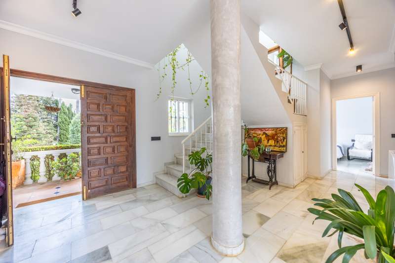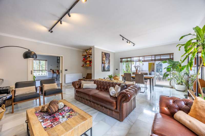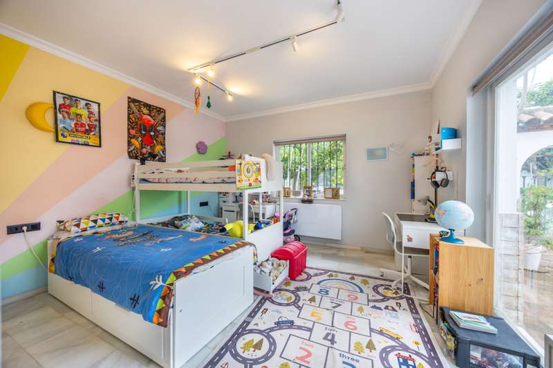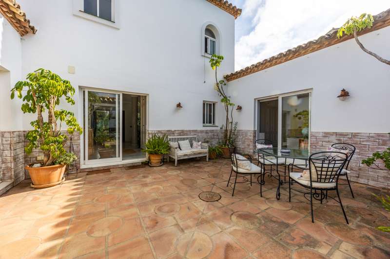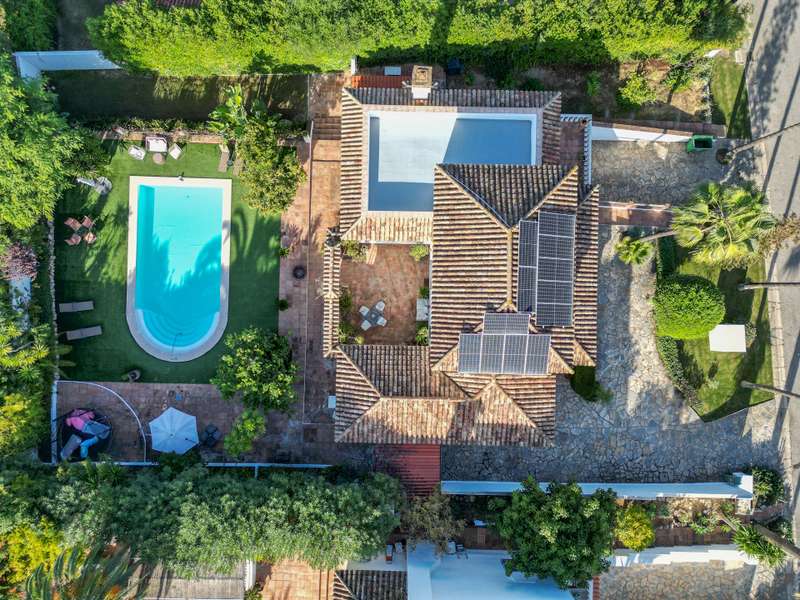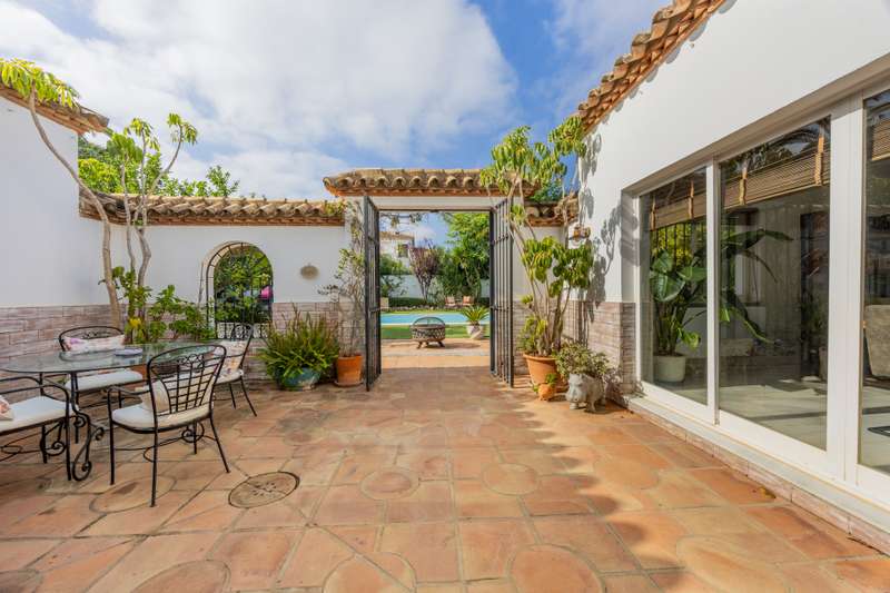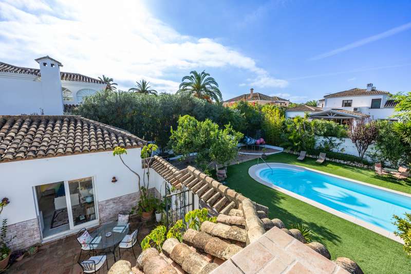 Bathed in the serene light of Sotogrande, this Andalusian-inspired villa exudes a warm, timeless elegance. Surrounded by mature gardens and an intimate atmosphere, the property blends traditional character with extraordinary brightness in every room, creating a home that invites you to enjoy it with calm and authenticity. The residence boasts 284,8 m² of built area, harmoniously distributed over a generous 1,100 m² plot. On the ground floor, life flows naturally through spacious areas. The living room, generous and bathed in garden light, offers a welcoming atmosphere thanks to its fireplace and a dining area ideal for long after-dinner conversations. The kitchen, spacious and with its own dining area, becomes the true heart of the home: a practical, family-friendly space, perfect for everyday living. This floor is completed by two bright bedrooms and two bathrooms, providing comfort and functionality from the very first moment. From the main entrance hall, living room, and one of the ground floor bedrooms, you access a charming Andalusian patio, a space that acts as a natural transition between indoors and outdoors, and which in turn opens onto the extensive private garden. Here, the pool is nestled among fruit trees and relaxation and leisure areas, creating a perfect oasis to enjoy Sotogrande’s privileged climate. Upstairs is the master bedroom, a spacious and elegant suite with en-suite bathroom and dressing room. Its L-shaped terrace, intimate and sunny, offers partial views of the sea and mountains, making it the perfect spot to watch the sunrise or unwind at the end of the day. With this, the property offers a total of three bedrooms and three bathrooms. The property also benefits from an approved extension project that will add 102 m² of built area, opening the door to new possibilities and adapting to the needs of future owners. It is also equipped with an aerothermal system and solar panels, a combination that provides efficiency, comfort, and sustainability. The property is completed by a spacious garage and a privileged residential setting in the Sotogrande Costa area, close to shopping centers, schools, the marina, golf clubs, and all the amenities of the development. A villa that combines Andalusian essence, privacy, and extraordinary potential in one of Sotogrande’s most sought-after locations. Ideal for those seeking a home with character, light, and the tranquility that defines this exclusive environment. Contact us for more information.