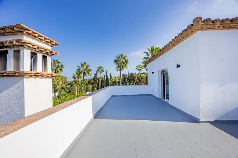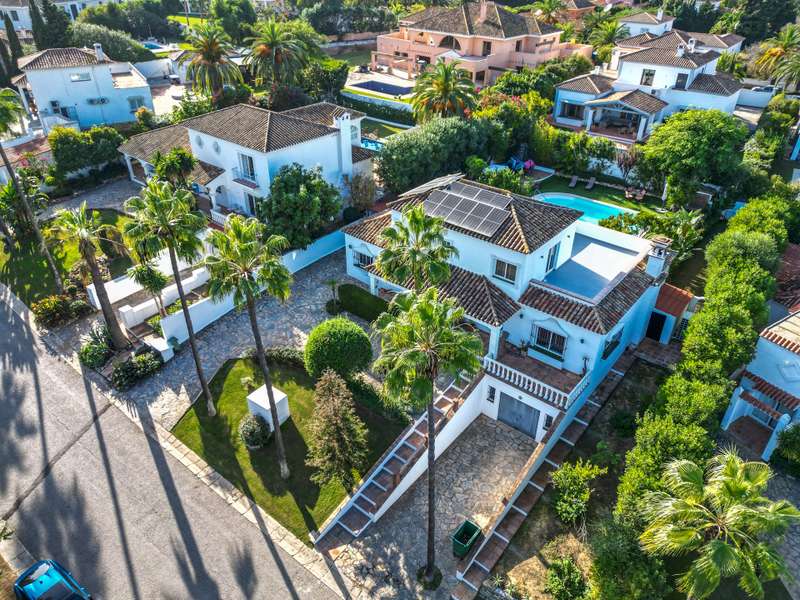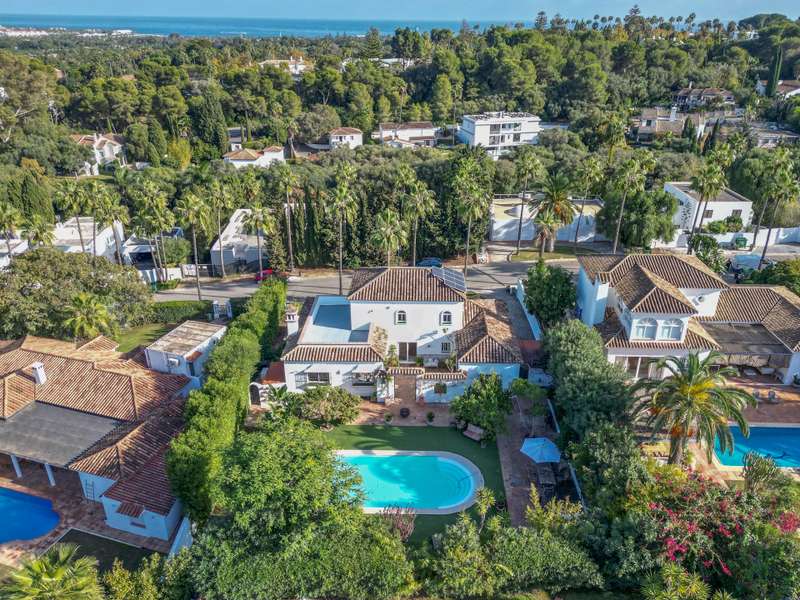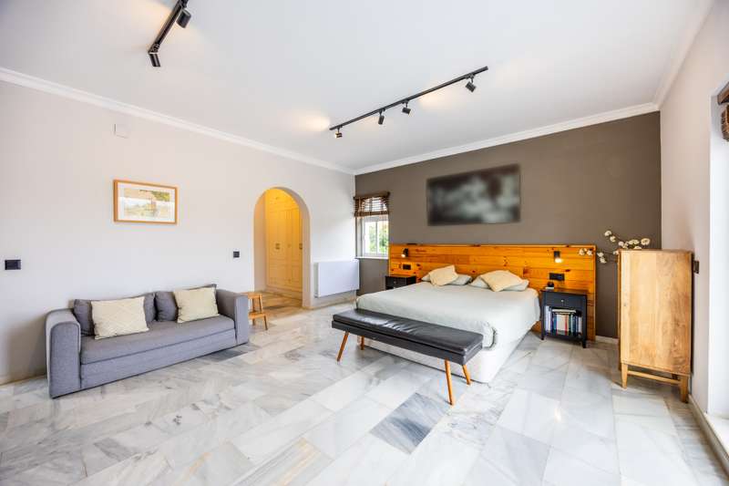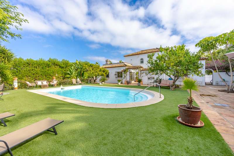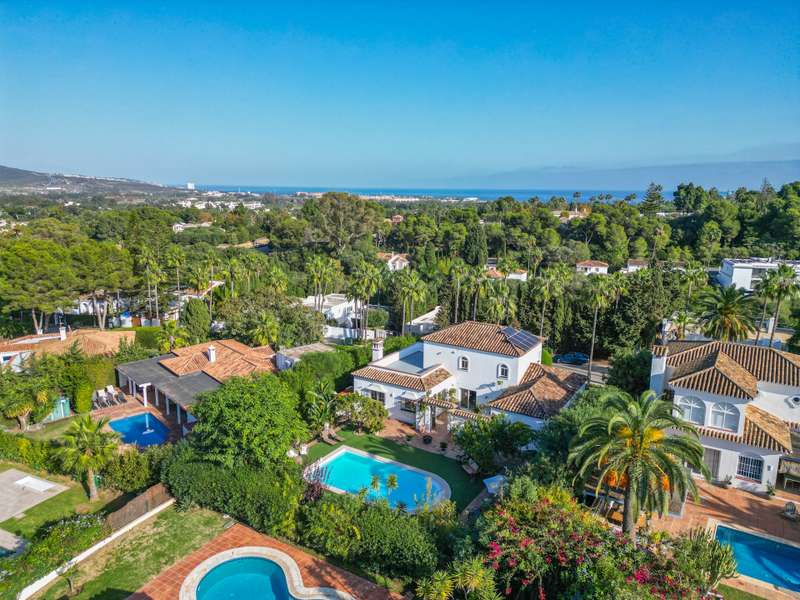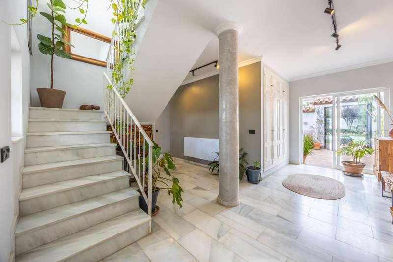 Bathed in the serene light of Sotogrande, this Andalusian-inspired villa exudes a warm, timeless elegance. Surrounded by mature gardens and an intimate atmosphere, the property blends traditional character with extraordinary brightness in every room, creating a home that invites you to enjoy it with calm and authenticity. The residence boasts 284,8 m² of built area, harmoniously distributed over a generous 1,100 m² plot. On the ground floor, life flows naturally through spacious areas. The living room, generous and bathed in garden light, offers a welcoming atmosphere thanks to its fireplace and a dining area ideal for long after-dinner conversations. The kitchen, spacious and with its own dining area, becomes the true heart of the home: a practical, family-friendly space, perfect for everyday living. This floor is completed by two bright bedrooms and two bathrooms, providing comfort and functionality from the very first moment. From the main entrance hall, living room, and one of the ground floor bedrooms, you access a charming Andalusian patio, a space that acts as a natural transition between indoors and outdoors, and which in turn opens onto the extensive private garden. Here, the pool is nestled among fruit trees and relaxation and leisure areas, creating a perfect oasis to enjoy Sotogrande’s privileged climate. Upstairs is the master bedroom, a spacious and elegant suite with en-suite bathroom and dressing room. Its L-shaped terrace, intimate and sunny, offers partial views of the sea and mountains, making it the perfect spot to watch the sunrise or unwind at the end of the day. With this, the property offers a total of three bedrooms and three bathrooms. The property also benefits from an approved extension project that will add 102 m² of built area, opening the door to new possibilities and adapting to the needs of future owners. It is also equipped with an aerothermal system and solar panels, a combination that provides efficiency, comfort, and sustainability. The property is completed by a spacious garage and a privileged residential setting in the Sotogrande Costa area, close to shopping centers, schools, the marina, golf clubs, and all the amenities of the development. A villa that combines Andalusian essence, privacy, and extraordinary potential in one of Sotogrande’s most sought-after locations. Ideal for those seeking a home with character, light, and the tranquility that defines this exclusive environment. Contact us for more information.