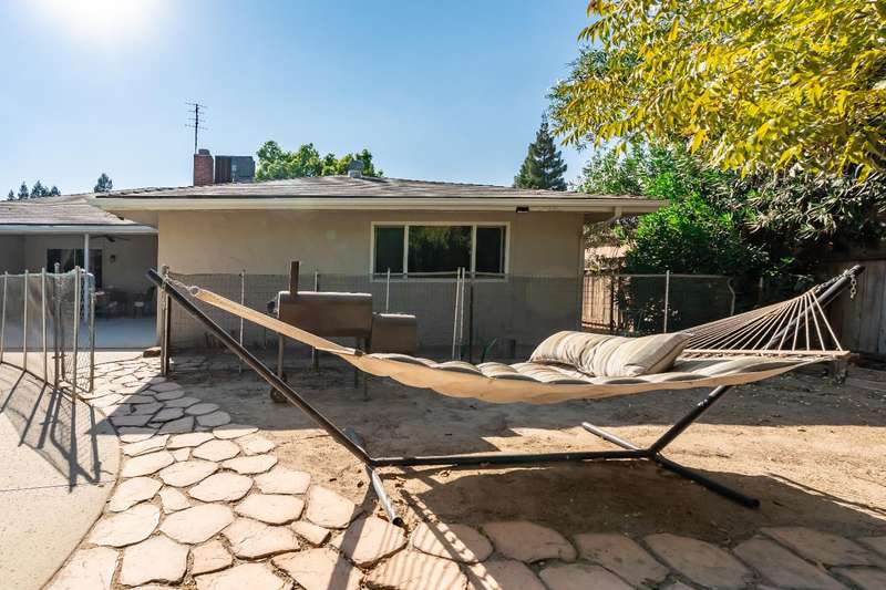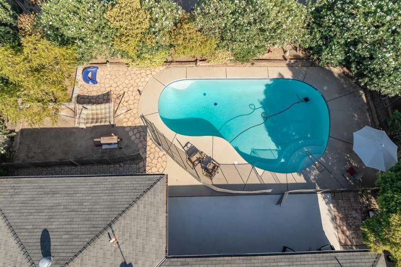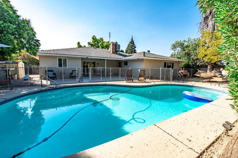 Hard to find 4 bedroom 2 bath home with over 2,000 square feet and inground pool in a great Sanger neighborhood. All three levels of schools are within a mile or less away including the highly reputed Sanger High. Exterior of the home has recently been painted. Mature trees in front shade the front yard and the entire front of the house, keeping you cool in the summer afternoon sun. Backyard pool fenced for child safety, is a sanctuary surrounded by trees and flowers. The living spaces in the home feature a free flowing open concept floor plan from the kitchen with wrap around counters and breakfast bar to the less formal dining and family room areas with a corner fireplace and a slider to the back patio and pool area. There is also a spacious living room facing the front of the home. The inside laundry has a convenient laundry soaking sink plus hookups for an electric 22V dryer plus overhead cabinets for extra storage. There are ceiling fans in the dining area and the bedrooms for energy saving comfort. The primary bedroom has a large walkin closet providing ample storage and with its own bathroom is an ensuite paradise. The rest of the household will enjoy the hall bathroom with it's double sinks and shower over tub.