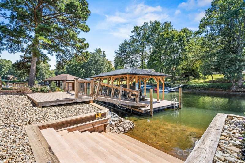 Waterfront custom home w/ one-of-a-kind architecture is a must see & rare find on Lake Norman, NC! Like new, built in 2024 offering approx 5,000 under-roof sq ft that blends indoor luxury w/ outdoor entertaining & fun in the sun! Home is situated in highly sought-after Westport in Denver, NC on a an easily navigable cove offering protection from main-channel wakes & noise. Composite wood floating dock w/sun deck, covered boat slip, & 5000 lb capacity boat lift. This is a bustling tree-lined cove w/ swimmers & 4-legged friends many months of the year, followed by a peaceful retreat to overlook smooth-as-glass water w/ beautiful NC colorful fall foliage. Cold-e-sac w/ no through traffic. Rear fenced in yard flanked with landscaping has a gentle slope to the lake that's ready for your dream pool. Inside, the soaring ceilings & oversized windows offer plenty of natural light. The heart of the home - main-level gourmet kitchen w/ oversized island w seating & appliances to wow the chef! Upper level is only a few steps & hosts the primary suite w/ private attached sundeck. Lower-level features 2-story great room w/floor to ceiling fireplace & game room w/wet bar for entertaining! Game room also has 2 custom-built full-size murphy beds & a full bath for extra visitors. Enjoy rear patio with custom sunshade & hot tub off the 2-story great room & game room. 3 more bedrooms/office & 2 more full baths are tucked away on the main floor behind the kitchen. Generous 2-car garage offers 815 sq ft w epoxy flooring & utility sink. Approx 1800 sq ft of floored storage above the primary bedroom & garage. Stamped driveway extends to front door entry & to rear yard. Memberships available to Westport Golf Club including tennis, pickleball, outdoor pool w/ kids splash area, fitness center, & new clubhouse for social events -. 5-minute drive to grocery, dining, retail, & access to HWY 16 for travel to Charlotte, Huntersville, or Hickory. Short term rentals permitted & home has an excellent history of rental success. Patio furniture, grills, poker table, washer, dryer convey. Fun fact, there is a tunnel from the lower level to upper level for small to medium sized pets! 2023 Southbay Pontoon (tritoon) w/ only 70 hrs is for sale also, please inquire. Take Fairfield Forest Rd off HWY 16 for easiest access to the home.