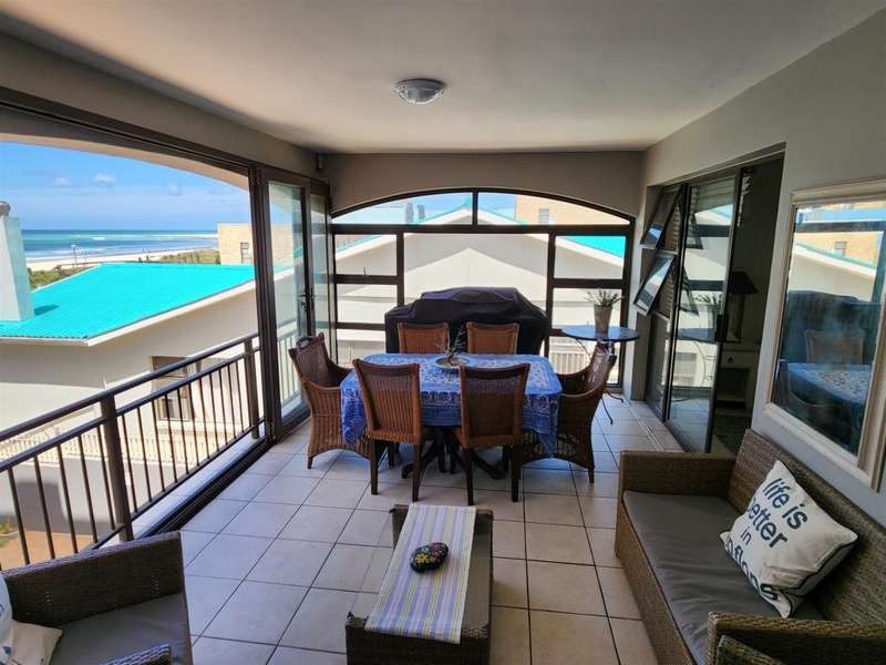 Apartment for Sale on the Beach This lovely apartment is situated in a secure complex area, close to the town centre, restaurants and main beach in Jeffreys Bay. It offers the following: - 3 Bedrooms - 2 Bathrooms (MES) - Open plan living, dining and kitchen area - Enclosed balcony with sea and breaker views and a gas braai. - Built-in braai - Secure Basement parking - 5KVA Inverter and battery - Complex swimming pool The prize includes all furniture, appliances and fittings Do not hesitate too long on this one.