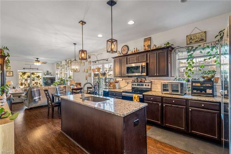Tucked away on a quiet road in Stokesdale, this 3-bedroom, 2-bath ranch gives you all the peace of country living without the middle-of-nowhere commute. Sitting on 1.17 acres with a perfect blend of open yard and trees, it's modern yet cozy ? built in 2019 and designed for easy living. The light-filled kitchen and open-concept layout make every day feel effortless, while the covered porch is made for slow mornings and peaceful evenings. Whether you're working from home or winding down after a long day, this place just feels right ? private, easy to maintain, and close enough to everything you need without the noise and rush.