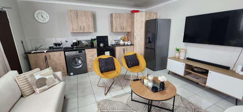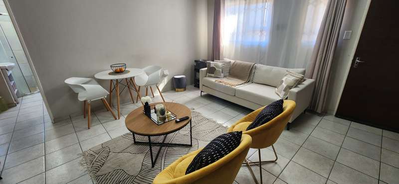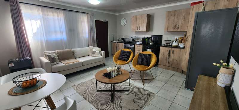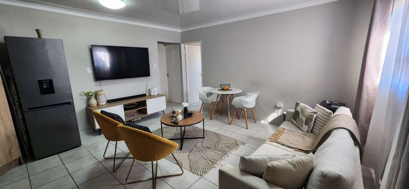 This upstairs apartment in a security complex features: 3 bedrooms modern fully fitted kitchen with gas stove open plan reception area 2 bathrooms smart geyser back up solar power borehole back up for water shedding carport visitors parking access controlled with automated gate lock up & go Viewings for pre-approved clients will be arranged by appointment. Contact me to assist with a pre-approval.