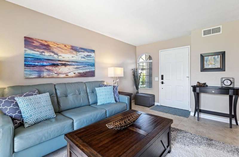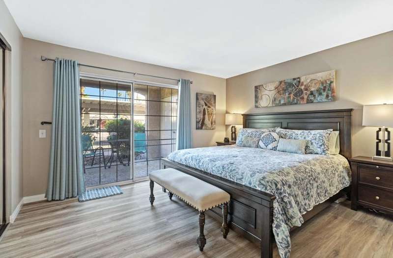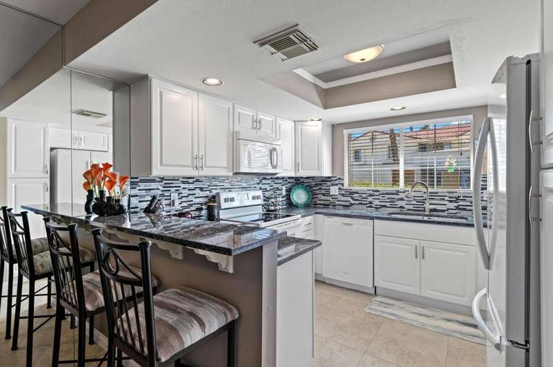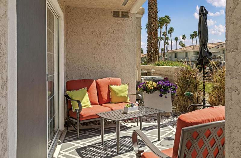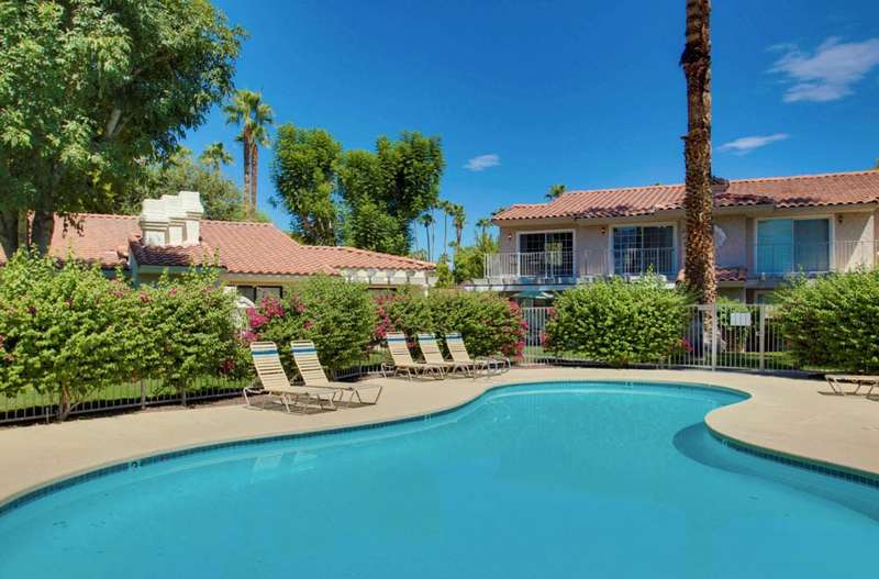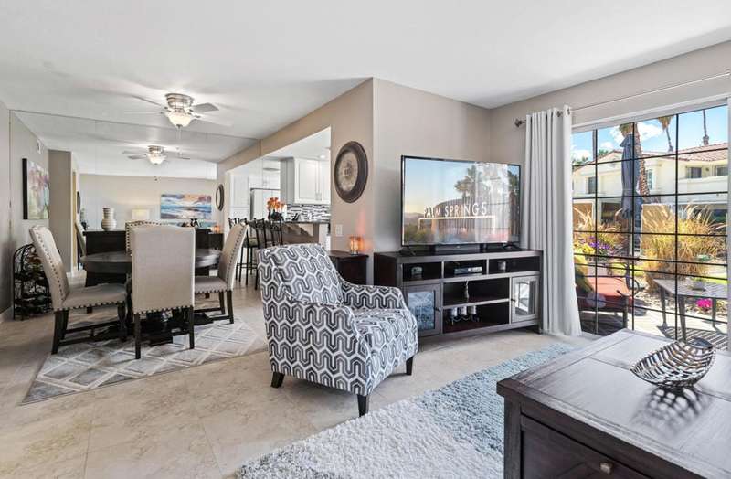 Vacation Rental - Mesquite Country Club, Palm SpringsCity ID: #068396Rate reflects next available date: Dec 2025. 7 Night minimum. Beautifully updated, light-filled end unit located poolside at the Mesquite Country Club, next to Prescott Preserve and close to downtown Palm Springs. This stylish, ground-level home (no stairs!) features two private outdoor patios, a gas BBQ, and sits right on the saltwater pool and hot tub. Covered parking included.Enjoy upgraded interiors, free in-unit laundry, basic cable, and WiFi. Tennis courts on site and golf courses nearby. Just bring your clothes and toothbrush--this home is fully stocked for your stay!Booking Requirements:November-April: 7-night minimumUtilities included.May-October: 30-day minimum$175/month Utility fee.Rates:Nov-Jan: $190/nightFeb-April: $206/night Summer (May-Oct): $1800/month (plus utility fee of $175/mo).(Sorry no annual rentals). NO Pets, NO Smoking.Fees:Cleaning: $225Property Fee: $188Refundable Security Deposit: $1000Booked: August - Oct, 2025, Nov 17-Dec 15, 2025, Jan 18-30, 2026 and Feb 4 - March 31, 2026