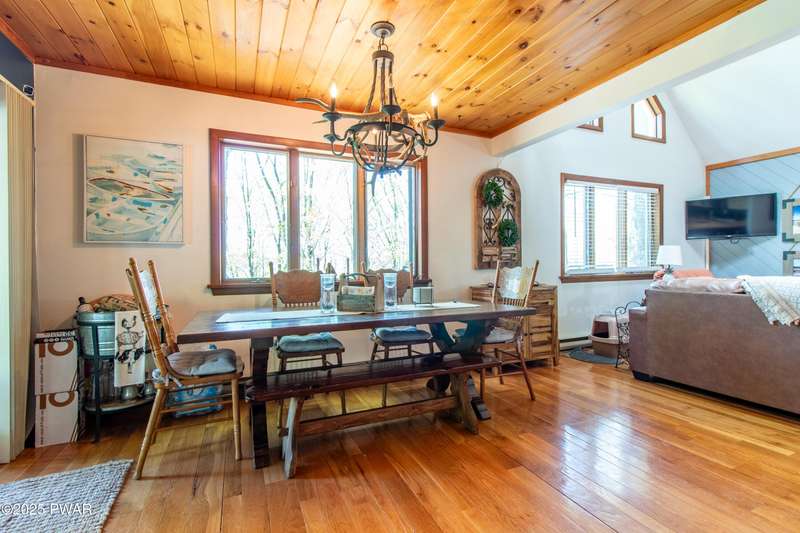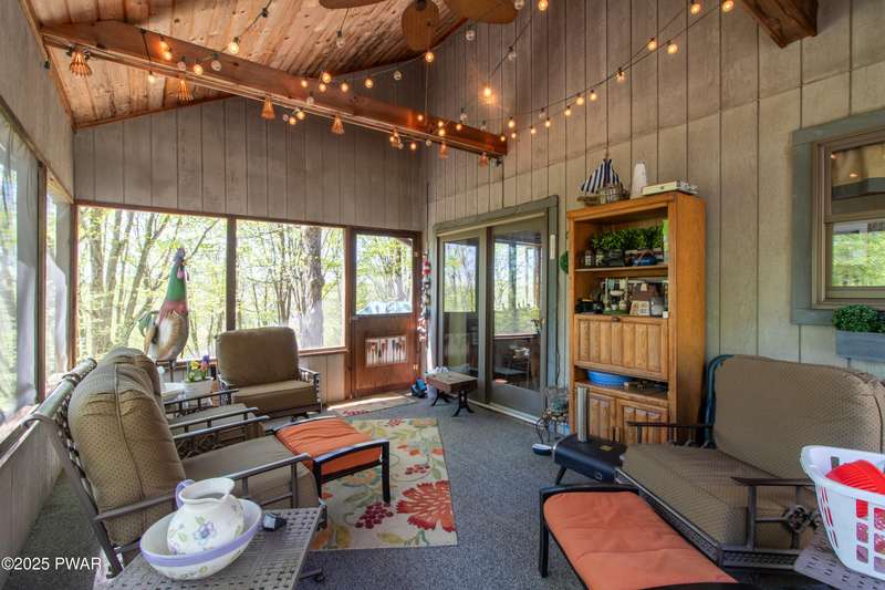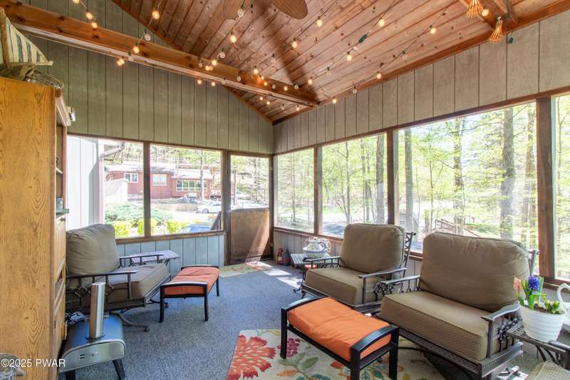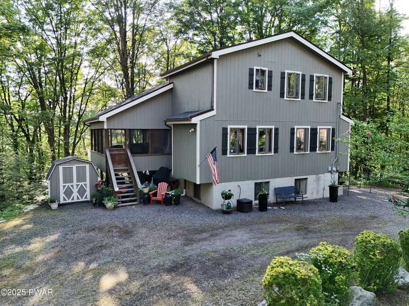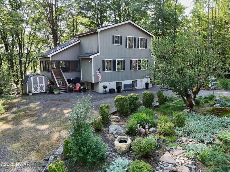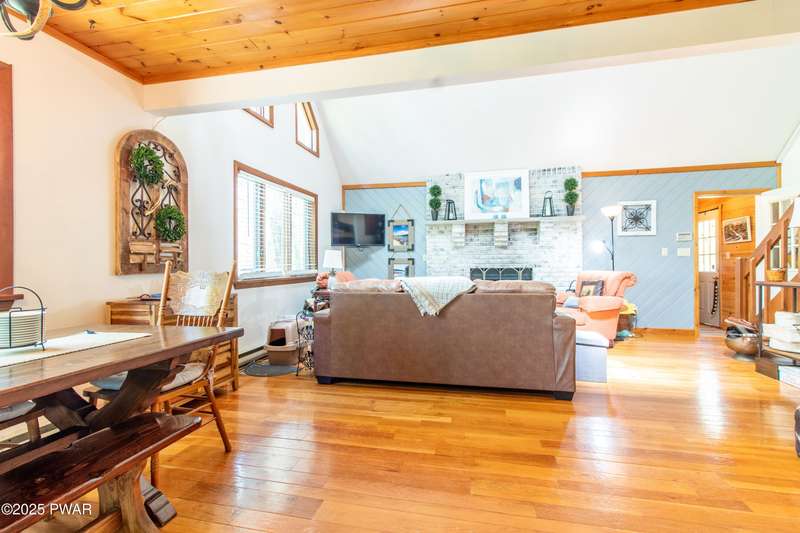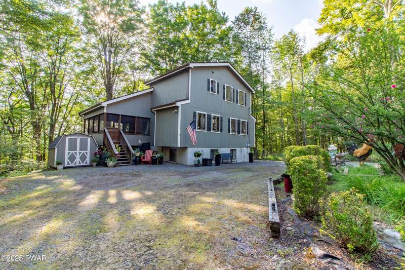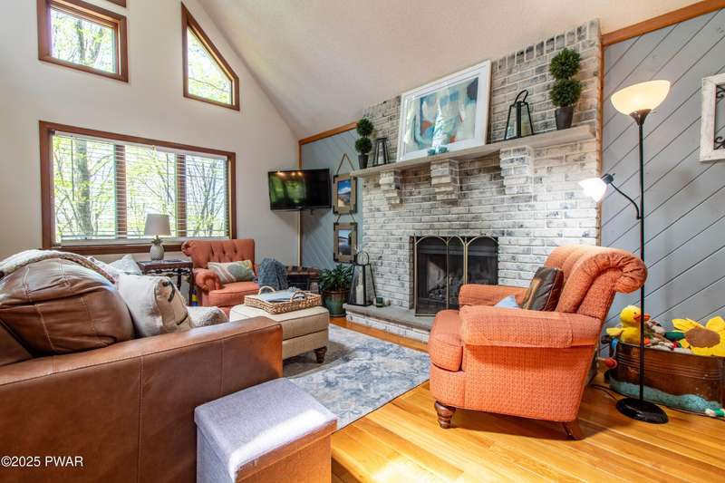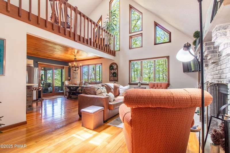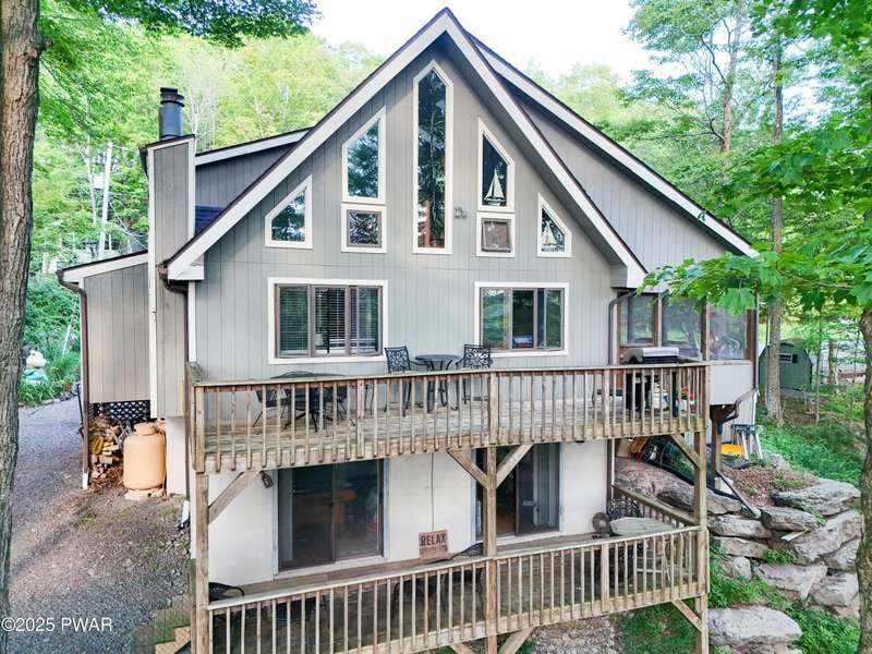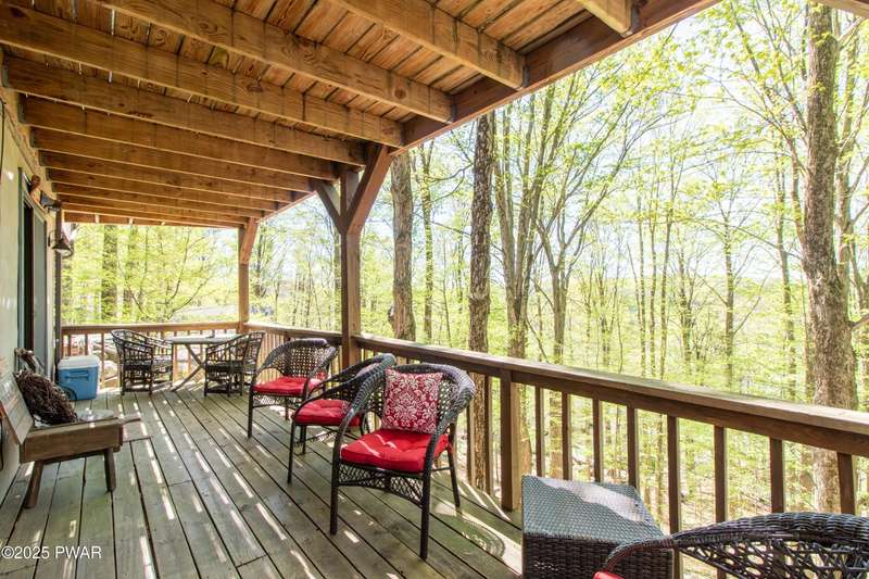 Wake up to the sounds of nature, unwind by the fire, and take in seasonal views of sparkling Brooks Lake--this is mountain living at its finest.Welcome to this spacious yet cozy 4-bedroom, 2.5-bath chalet, perfectly nestled high among the trees in one of the most desirable spots in The Hideout. Set on a quiet dead-end street, this lovingly maintained home offers just the right mix of peaceful seclusion and convenient access to the community's year-round amenities.Inside, you're greeted with gleaming hardwood floors, vaulted tongue-and-groove pine ceilings, and a stunning stone fireplace that instantly makes you feel at home. The open-concept layout is bright and welcoming, with oversized windows that frame your woodland and lake views.The main living area flows effortlessly onto a screened-in porch and two elevated balcony decks, perfect for outdoor dining, entertaining, or sipping coffee while taking in the sights and sounds of the forest. The home is filled with rustic charm and thoughtful finishes, and best of all--some furnishings are included, so you can start enjoying it right away.Upstairs, a full-size loft provides flexible space for a second lounge, guest sleeping area, or home office. The generously sized primary suite features a spa-like bath with jacuzzi tub--perfect for unwinding after a day of adventure. Downstairs, the completely renovated lower level offers even more space for a game room, movie area, or bunkroom setup.A circular driveway makes guest parking easy, and the home's location is ideal for enjoying all four seasons. In fall and winter, enjoy peaceful seasonal lake views; in spring and summer, feel tucked into your own private treehouse escape.All of this, plus access to an amenity-filled, gated community with 24-hour security and activities for every season--indoor and outdoor pools, golf, fitness centers, lakes for boating and fishing, beaches, tennis courts, skiing, and more.Whether you're looking for