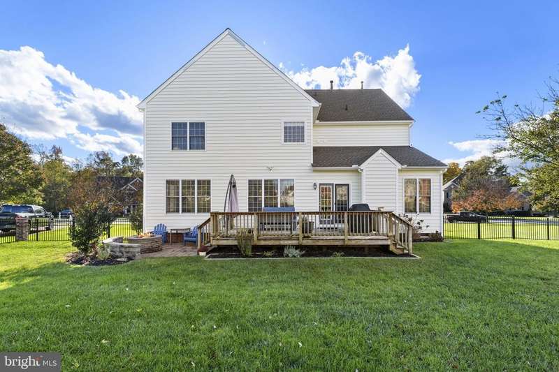 Welcome to The Oaks at Crossridge! This beautiful transitional home offers 5 bedrooms with a possible 6th on the third floor, complete with its own bath, and a total of 3.1 baths. The open floor plan features a family room with a vaulted ceiling and a gas fireplace, open to the eat-in kitchen with granite countertops, stainless steel appliances, and a breakfast bar. Crown molding enhances the welcoming foyer, living room, and dining room, which also features a tray ceiling. The first floor includes a dedicated office and a bright sunroom providing additional flex space. Upstairs are five spacious bedrooms, including a large primary suite with an expansive en-suite bath. The oversized garage offers a pedestrian door and built-in cabinets for extra storage. Outdoor living is easy with a fenced yard, deck, patio with a firepit, and attractive landscaping. Major updates include a new roof (2025) and hot water heater (2020).