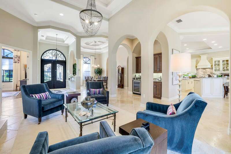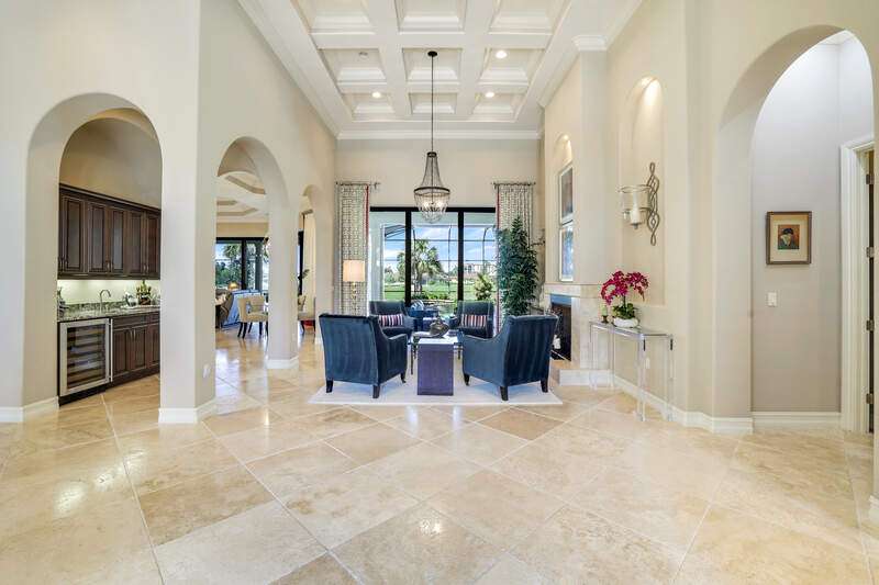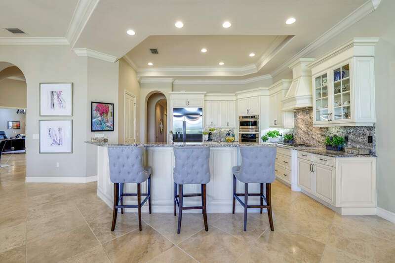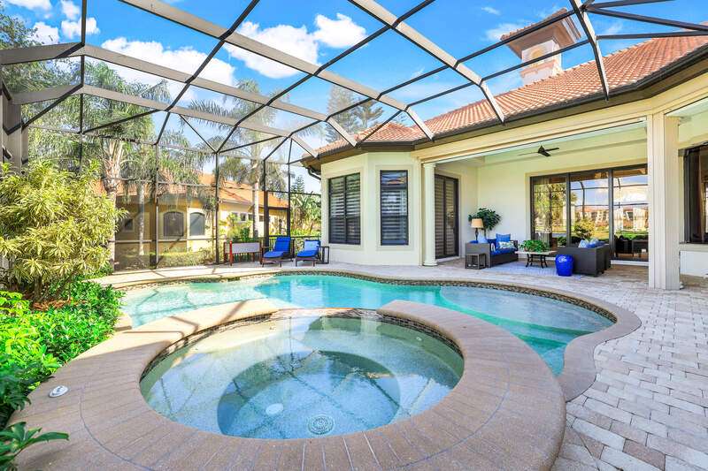 Welcome home to this prestigious and spacious Stock built property at Classics Plantation Estates. Open Majorca floor plan and spectacular view of both the Classics Golf course and lake view. Breathtaking outdoor spaces with an outdoor bar and grill. Perfect for relaxation and entertainment. Gas range in kitchen. Gas heated pool and spa. Newly installled electric Storm Smart shutters. New roof and new refrigerator. Great walk in closet and extra storage in the 3-car garage. The award winning and popular Players Club and Spa offers attended fitness center with new equipment, various classes, lap pool, swimming pools, tennis, pickle ball, bocci, Tiki Bar, restaurant and much more. This home is in excellent condition and being sold partly furnished and has to be seen to be fully appreciated.