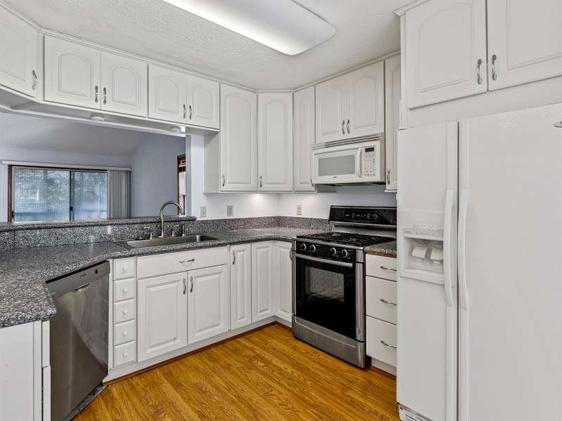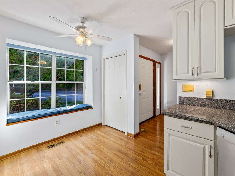 Nestled in a quiet Hendersonville community, this move-in ready townhome offers a perfect balance of comfort and convenience. The inviting exterior features a cheerful red door and a mature shade tree for curb appeal. Inside, vaulted ceilings and hardwood floors create an airy living space filled with natural light. The bright kitchen includes granite countertops, stainless appliances, and crisp white cabinetry, opening to the living area for easy entertaining. A sliding glass door leads to the private screened porch, ideal for morning coffee or evening relaxation overlooking lush greenery. Peaceful bedrooms and established landscaping add to the appeal. Located in Laurel Park and just minutes from shopping, dining, and downtown Hendersonville, this home offers the perfect blend of privacy and accessibility.