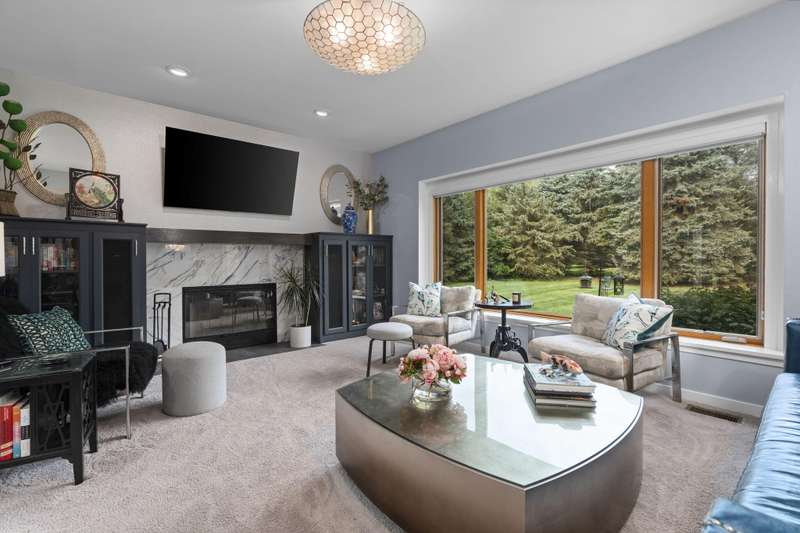 Set on a private, tree-lined acre mins from downtown Dexter, this thoughtfully renovated home blends modern design w/ smalltown charm. The 1st flr has 9' ceilings, stunning kitchen features honed granite counters, marble backsplash, custom hood, premium appliances (2020-24), & a 7' island w/ deep drawers & custom storage. Light-filled living spaces include wood floors, new smart Lutron lighting, custom window treatments, & a fireplace w/oak mantel & built-ins. The primary suite offers dual custom closets, remote shades, & a spa like 2024 bath w/Calacatta terrazzo tile, teak vanity, Euro shower, freestanding Kohler tub, & a high-tech mirror. Lifestyle amenities include a Finnish cedar sauna, whole-home water filtration and RO, renovated laundry, and updated half bath. Peace of mind comes w/an Owens Corning roof (2018) with warranty, furnace (2016), radon fan (2025), Yale smart lock, & low-maintenance cement siding. Outdoors, enjoy a paver patio and private yard with mature trees