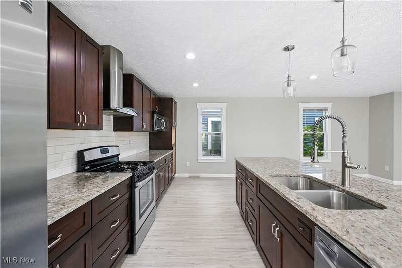 Beautiful Ohio City colonial with 3 FULL bathrooms, ready for immediate occupancy. Over 2,000 square feet of living space, first floor laundry, and a 2.5 car garage, this home truly will have everything you've been looking for. The welcoming front porch that has recently been rebuilt is the perfect place to start your morning with a cup of coffee. The first floor is spacious and a true open concept. Brand new LVP flooring and neutral paint throughout. The 10' island is ideal for entertaining. Upstairs is the freshly painted primary bedroom with vaulted ceilings, a large walk-in closet, and an en suite full bath. Two additional well-sized bedrooms round out the second floor with a shared bathroom. You'll love the fully fenced in backyard that has a deck and plenty of room for your pup to play. This property also features new vinyl siding on the main house. Ideal location, just north of Bridge Ave. and walkable to neighborhood favorites.