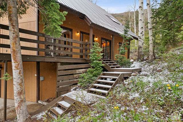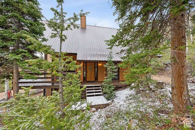 Nestled among towering pines and aspens in one of the best locations of Pine Mountain lies this beautiful 5 bed 3.5 bath custom cabin with a bonus loft. A perfect space to host large gatherings with its high sleeping capacity and ample lot size. The cabin sits near the top of the community, backing open space, with superb canyon and forest views from both the spacious deck and 29 foot floor to ceiling windows. With miles of trails within the Pine Mountain community connecting to national forest this cabin provides amazing recreation opportunities in both the summer and winter months. Hiking, skiing, fly fishing, snowmobiling, atv riding and more all directly from the cabin. Strategic upgrades have been undertaken including a newer metal roof, upgraded new electric panel, new pex water lines, and new pellet stove allowing for immediate enjoyment or the perfect foundation for personal touches. This opportunity to be in one of the best locations in one of the most desirable communities in Weber Canyon with this amazing cabin is not one to be missed.