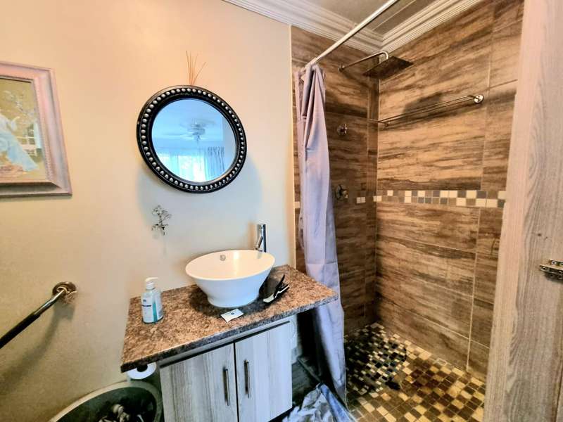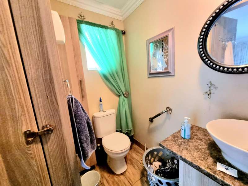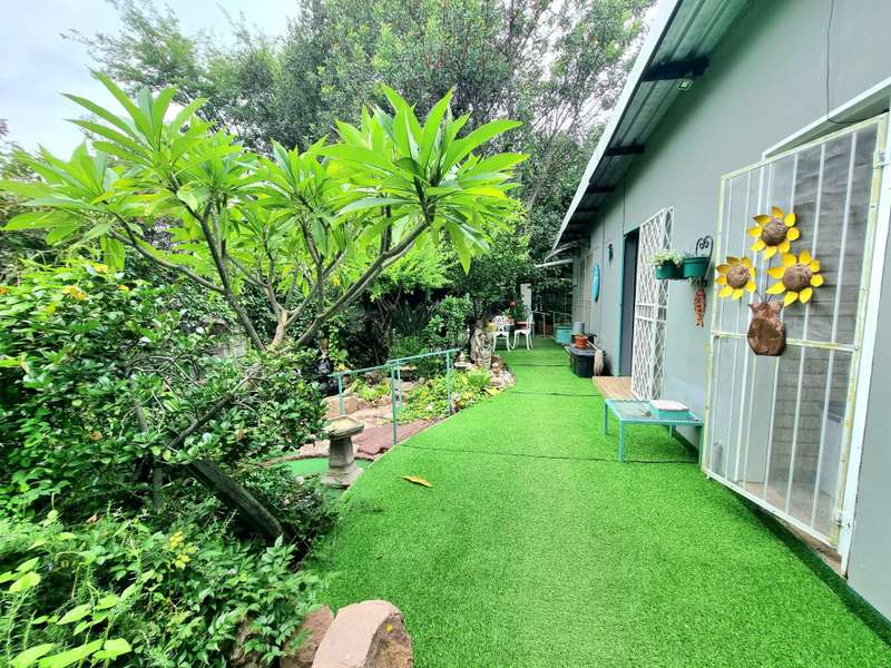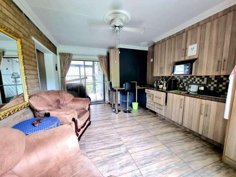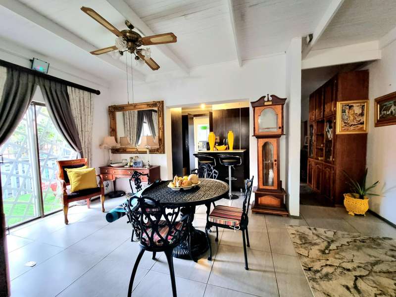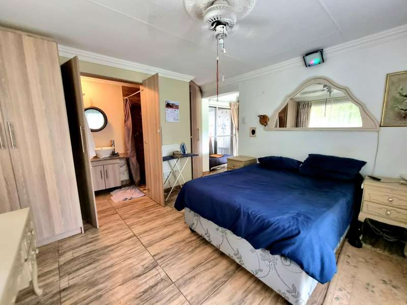 Adjacent to the main house is the second 1-bedroom unit, which feels more like a standalone home. It welcomes you into a spacious open-plan living and dining area that flows into a well-equipped kitchen with a gas hob, electric oven, walk-in pantry, and a separate scullery and laundry room. The large bedroom includes a built-in safe and a full en-suite bathroom, while a private enclosed patio offers a tranquil retreat. With its own entrance, yard, and double covered carport, this unit ensures privacy and independence.