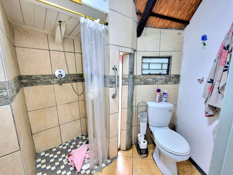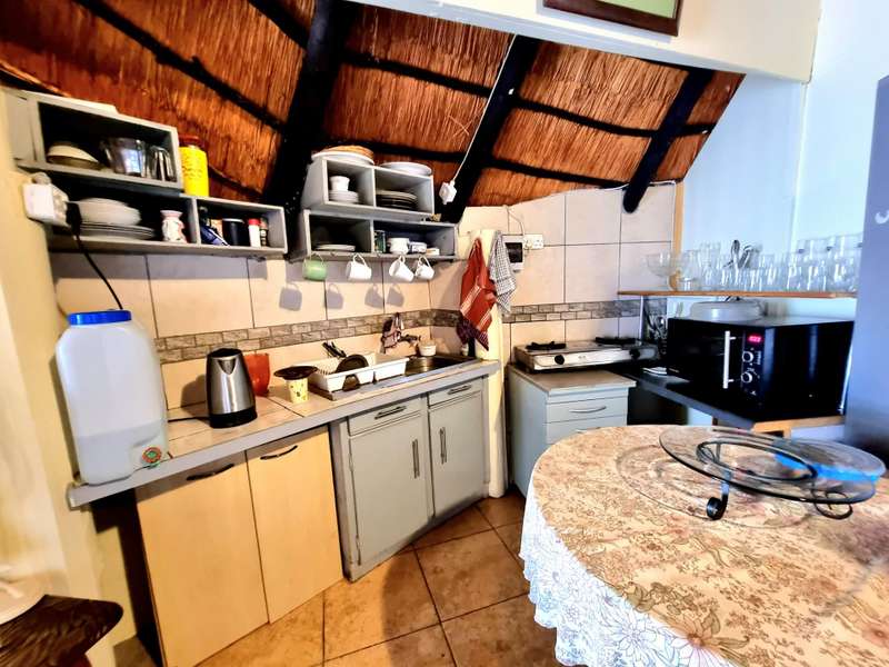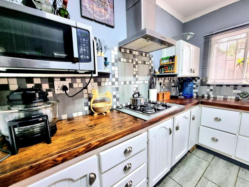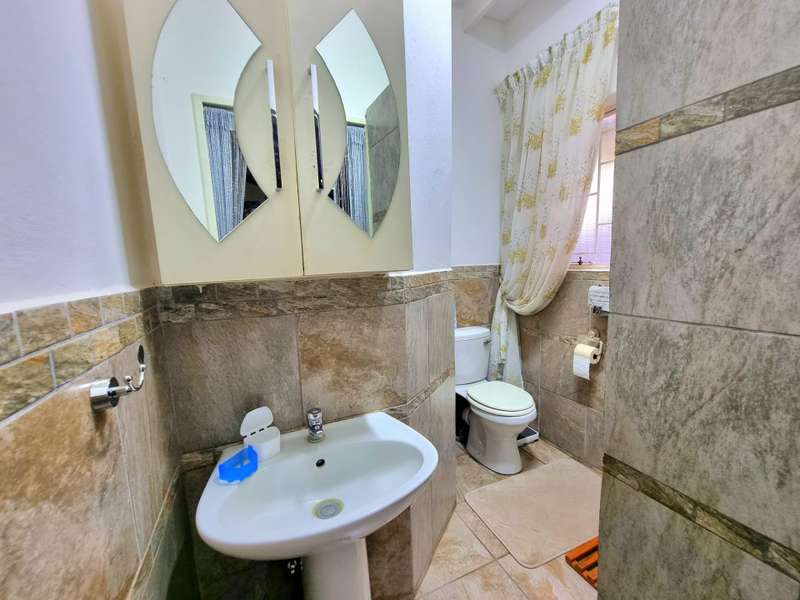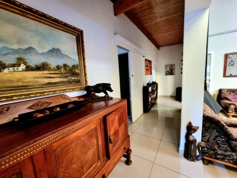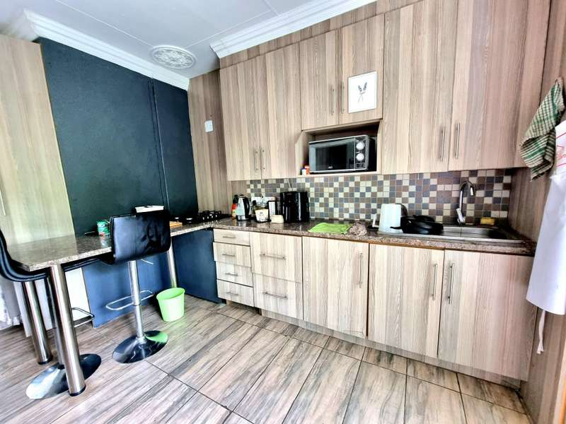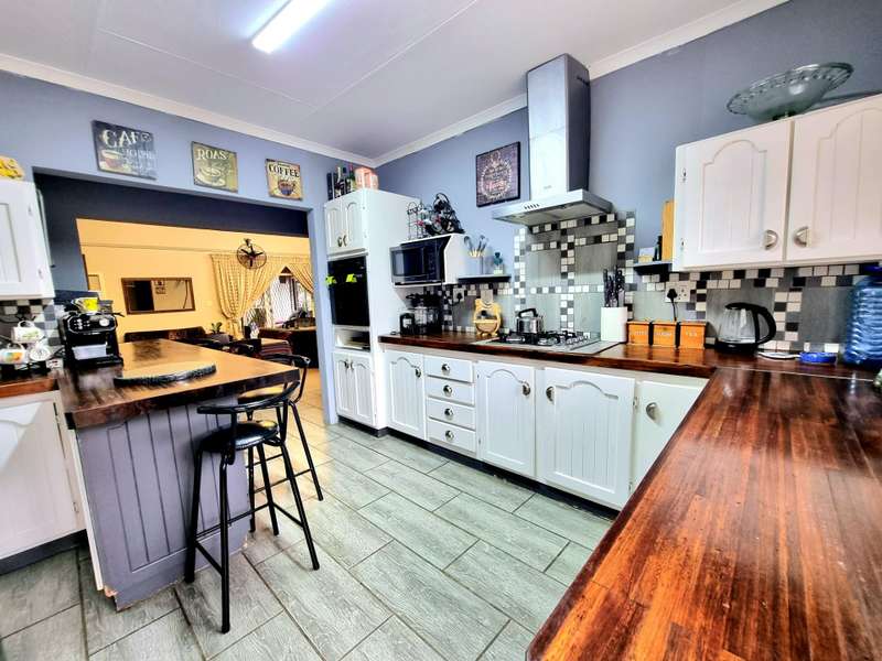 Adjacent to the main house is the second 1-bedroom unit, which feels more like a standalone home. It welcomes you into a spacious open-plan living and dining area that flows into a well-equipped kitchen with a gas hob, electric oven, walk-in pantry, and a separate scullery and laundry room. The large bedroom includes a built-in safe and a full en-suite bathroom, while a private enclosed patio offers a tranquil retreat. With its own entrance, yard, and double covered carport, this unit ensures privacy and independence.