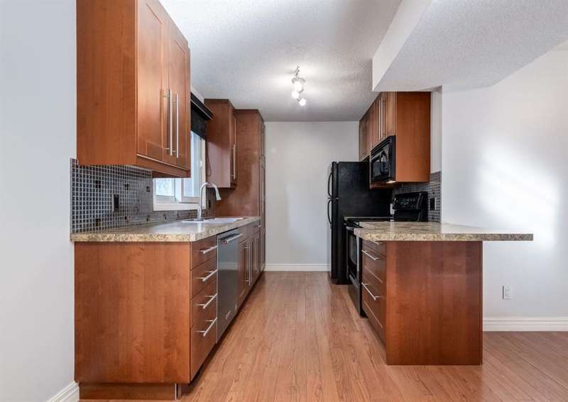 SPACIOUS townhouse in the heart of Crescent Heights—offering nearly 1,600 square feet of living space over two levels designed with comfort and functionality in mind. Inside you’ll find three generous bedrooms, two full bathrooms, and ample storage throughout. The living space on the main level has just been freshly repainted in neutral tones and boasts a welcoming living room with a cozy gas fireplace and patio doors that lead out to your private outdoor space overlooking a secluded courtyard with beautiful flower boxes. The kitchen offers a practical layout with a west-facing window above the sink, and an upgraded dishwasher. The bright lower level, filled with oversized windows, offers incredible versatility with an ILLEGAL SUITE that includes a kitchenette, expansive rec room, huge bedroom, and shared laundry. The furnace was replaced in 2021 and the exterior of the building was recently painted, providing added peace of mind. Perfectly located in a pet-friendly complex (with board approval), this home is within walking distance to Rotary Park, tennis courts, grocery stores, restaurants, shops, and even downtown—making it ideal for both convenience and lifestyle. Floor plans and a 3D tour are readily available, providing a glimpse into this stylish townhome!