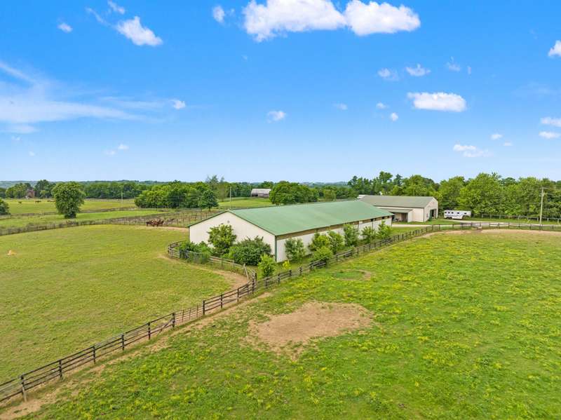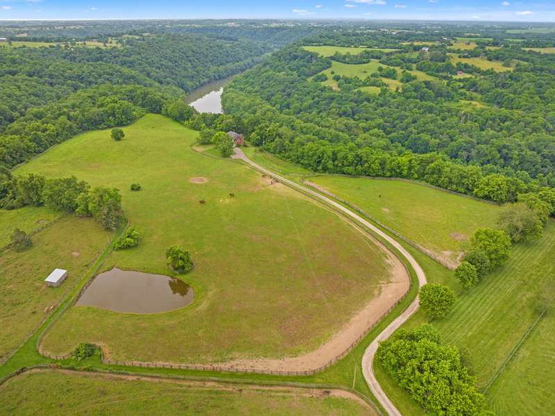 Discover this remarkable 54-acre property in the heart of Woodford County, offering a unique combination of privacy, functionality, and scenic beauty. The main residence features 5 bedrooms, 4 full baths, and over 4,500 square feet of finished living space, including a 2-car attached garage. Located at the rear of a working Thoroughbred farm, the home enjoys stunning views of the Kentucky River and surrounding woodlands. A spacious walk-out basement includes a full bath and kitchenette-ideal for guest quarters or a multigenerational layout. Additional features include a two-zone geothermal HVAC system and a large rear deck overlooking the river. The property also includes a barn, indoor arena, and two tenant houses. Furnishings in the primary residence are available for purchase.