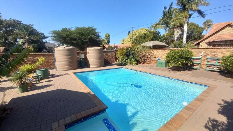 Now Available!! Large 4 Bedroom House with 2 Bedroom Granny Flat Adjacent Lounge Dining Room Large TV Room Patio Kitchen with Solid Wood Cupboards and Scullery Main bedroom En-suit 3 more Large Bedrooms Full 2nd bathroom Double Garage -Automated Large Pool Staff Quarters or Work Room Large and very Neat Garden with Various Aloes Flat - (Door can be used to the main house) Open plan Lounge and Kitchen 2 Bedroom Full Bathroom Well Planned , Low Maintenance Garden 12,000 Liter (3x tanks) to harvest water - with pumps 8KV Solar System - 2 batteries and 14 Panels - NOT included in Sale - Available to buy Separately!! "View by Appointment Only"