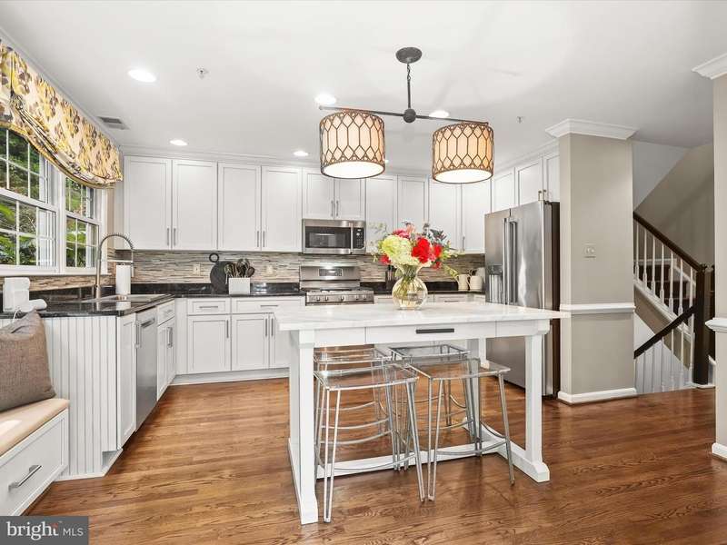 Discover 1007 Lillies Lane, a luxury townhome in the sought-after Rivers Ridge community, perfectly positioned to overlook the scenic Patapsco River. Steeped in the historic charm of Historic Oella and Ellicott City, this exquisite home is framed by lush foliage and extensive hardscaping, offering a serene and private retreat just moments from trails, shops, and restaurants. Inside, this designer's residence showcases rich hardwood floors, classic moldings, and custom built-ins that lend character and warmth throughout. The entry-level welcomes you with a private office framed by a sun-drenched bay window, a versatile bonus room, a powder room, and access to the attached two-car garage. Upstairs, the elegant living and dining rooms are bathed in natural light, with the living room anchored by a cozy fireplace and a custom wine nook with built-ins. The chef's eat-in kitchen is the heart of the home, featuring sleek stainless steel appliances, soft-close cabinetry, decorative backsplash, granite countertops, a walk-in pantry, bench seating with views of the lush landscape, and a casual dining area with direct access to the deck and lower patio. A charming sitting room with built-in shelving, bay window, private balcony access, and an additional powder room completes this level. On the top floor, the spacious primary suite impresses with soaring ceilings, a walk-in closet plus a second closet, and an en-suite bath with dual vanities, a skylight, and a glass-enclosed shower. Two additional bedrooms, each with vaulted ceilings, a full bath, and a convenient laundry area round out this exceptional home. There are multiple bids on the property. The Seller is calling for best and final bids by 8/15/2025 noon.