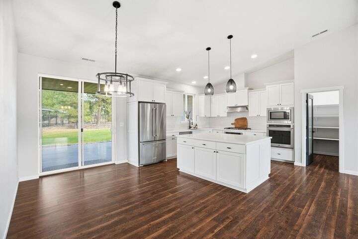 Experience refined living in this stunning 2021 modern farmhouse, located in the private, gated community of Red Fox Ridge. Offering an incredible opportunity, this is the most attractively priced home in the neighborhood with no compromise on luxury, style, or setting. Enjoy 2,711 sq ft of thoughtfully designed space featuring 4 bedrooms, 2.5 baths, soaring vaulted ceilings with custom beams, & an open flow layout made for gatherings. The gourmet kitchen boasts a generous island & double ovens, opening effortlessly to the warm dining & living areas.The luxurious primary suite offers a relaxing retreat with a huge, oversized walk-in closet & spa inspired bathroom. Spacious main floor bonus room with its own bar makes entertaining easy whether for game nights, movie marathons, or holiday hosting. Situated on 0.51-acre corner lot that backs to a peaceful wooded HOA easement, you’ll love the privacy, wildlife views, stone firepit, & covered patio for year-round enjoyment.