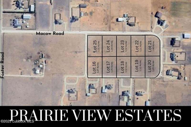 Build Your Dream Home in Prairie View Estates! Ten one+ acre lots available in this premier subdivision, a quick 20 minute drive from Lubbock but worlds apart- Minimum 1800 sq ft home- One large or two small animals per acre- Get your country on and enjoy life at a little slower pace...great place to put down some roots and savor the sunsets!