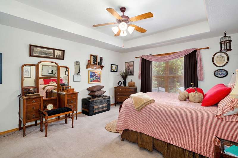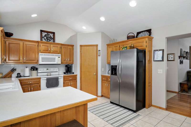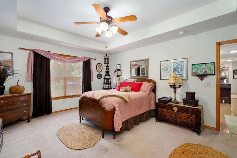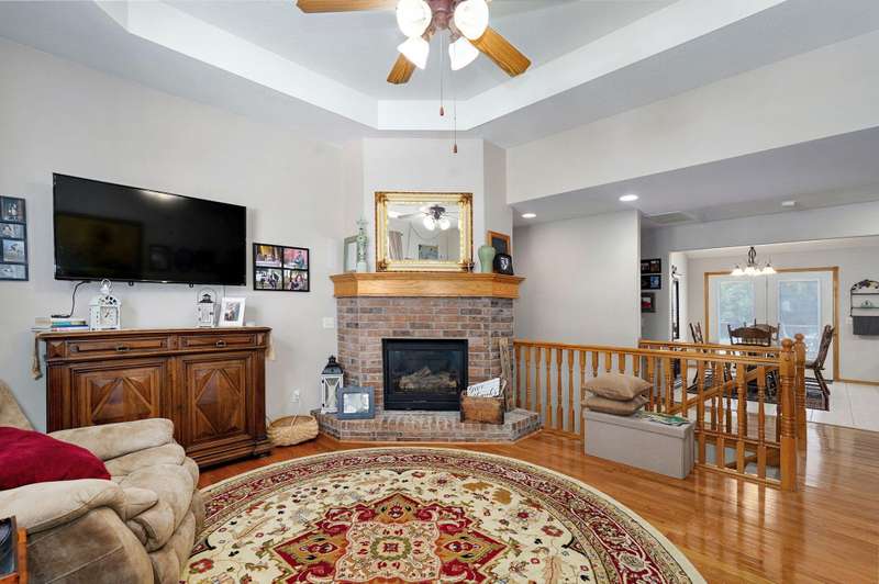 Walkout basement home in KICKAPOO SCHOOLS! Nestled in a quiet little neighborhood, this one owner home is ready to be loved by new owners! They have loved backing to woods and having the privacy this home offers. Generous main floor living room w vaulted ceiling and gas fireplace is open to kitchen dining. You'll love all the light in this space and a great kitchen design w/ breakfast bar and walk-in pantry!Three bedrooms on this main floor include a PRIMARY suite with walk-in closet and a super walk-in shower and jetted tub. Two secondary bedrooms on the other end of the home share a full hall bath. Laundry room is here as well. Every inch of this house is so very well kept!The lower level offers great storage space, workshop area, and a huge family room that is perfect for game day gatherings! A 4th bedroom has a really large closet and close access to the lower level full bath. Lots of family memories gather here. Outdoor hotspots include the main level deck and the patio below. Great news - the back yard faces east so evening will be shaded and comfortable!!