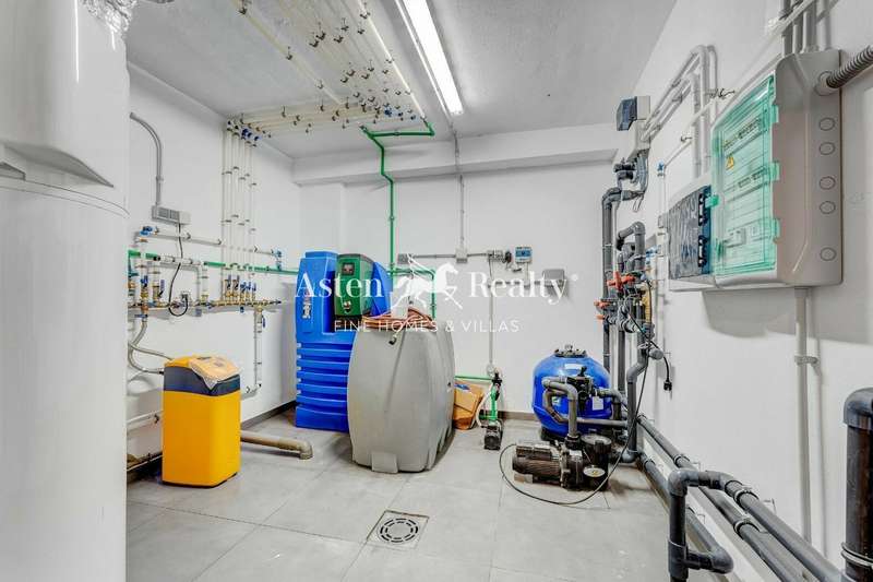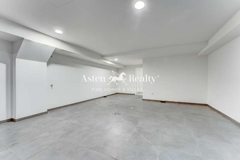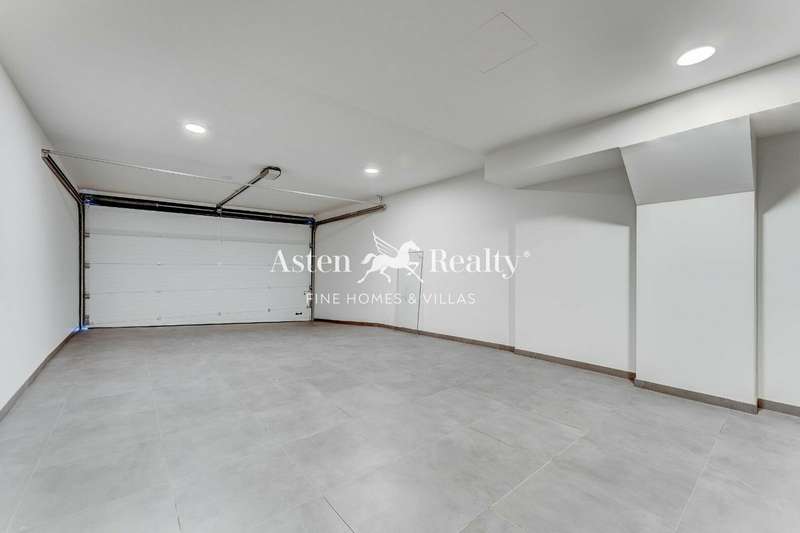 It is distributed in 3 bedrooms, all with en-suite bathrooms, two of them with dressing room, a fully equipped kitchen, a spacious living room and a guest bathroom. The basement has 3 multifunctional rooms that could be used as a gym, office, cinema room, games room, etc, with natural light that would also allow them to be converted into a sleeping area and that comply with all the habitability standards for this use. The basement also has a large bathroom, a technical room, a laundry room and a storage room, and as a great strength it has a large garage with capacity for up to 4 cars. The outdoor area has a 32 m2 heated infinity pool, garden areas, large terraces and porches.