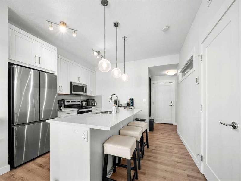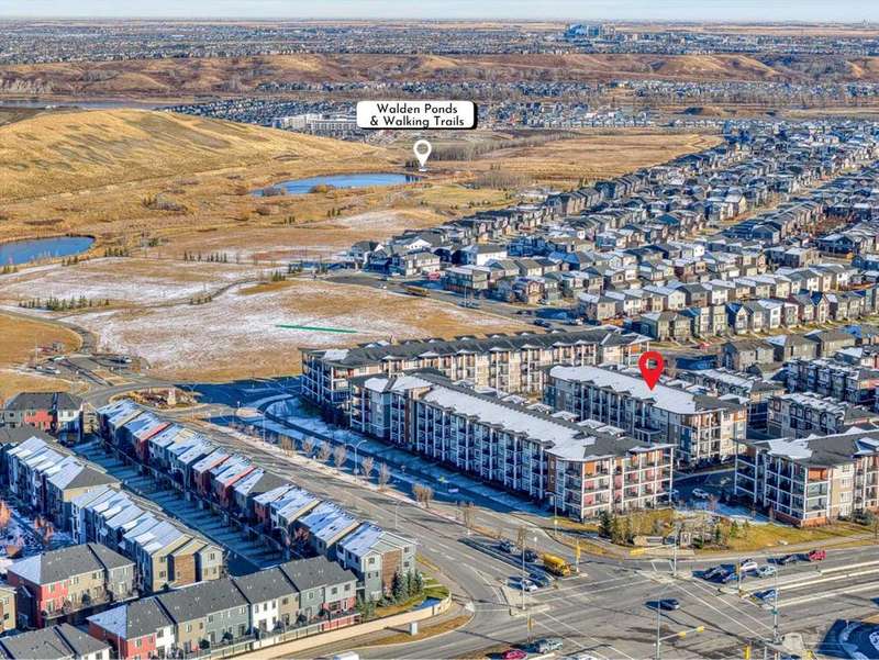 2023 Buit, Top Floor, bright, modern, and perfectly located, this 2-bedroom condo in Walden offers incredible value at just $259,900! Situated in the well-managed, elevator-equipped building, this home features nearly 530 sq. ft. of open-concept living space, a titled parking stall, a private storage locker, and a spacious balcony with a natural gas hookup where BBQs are permitted. Inside, the unit features a practical layout with a welcoming entryway, a bright living area, and a modern kitchen equipped with a spacious island, quartz countertops, stainless steel appliances, and ample cabinet space. The bedroom with a built-in closet, while the den offers the perfect spot for a home office or added storage. Large windows fill the home with natural light, creating a comfortable and inviting atmosphere. No carpet. Upgraded flooring - LVP all throughout. This pet-friendly building is located in Walden, one of Calgary’s most peaceful and nature-focused communities. You’ll love the tree-lined streets, green spaces, walking paths, and nearby natural wetland. Dog owners will appreciate close proximity to Fish Creek Park, Wolf Willow Dog Park, and other outdoor spaces. Everyday convenience is unmatched with easy access to Gates of Walden, Township, Shawnessy Village, grocery stores, restaurants, banks, and major retailers. Commuting is seamless with quick connections to Macleod Trail and nearby transit routes. Additional perks include common bike parking, secured underground storage, and a dedicated parking stall just steps from the building. Low condo fees of $242.57 per month include heat, water, building insurance, snow and garbage removal, and contributions to the reserve fund, offering predictable monthly costs and worry-free living. Perfect for first-time buyers, downsizers, or investors seeking a low-maintenance property in a vibrant and growing community.